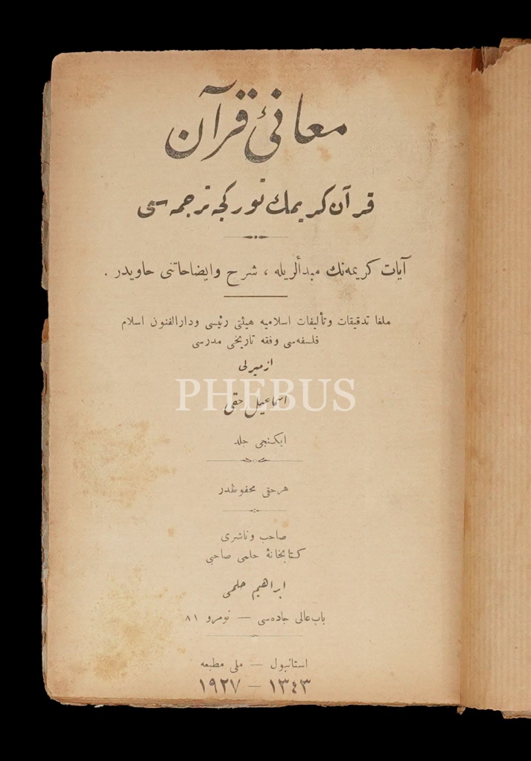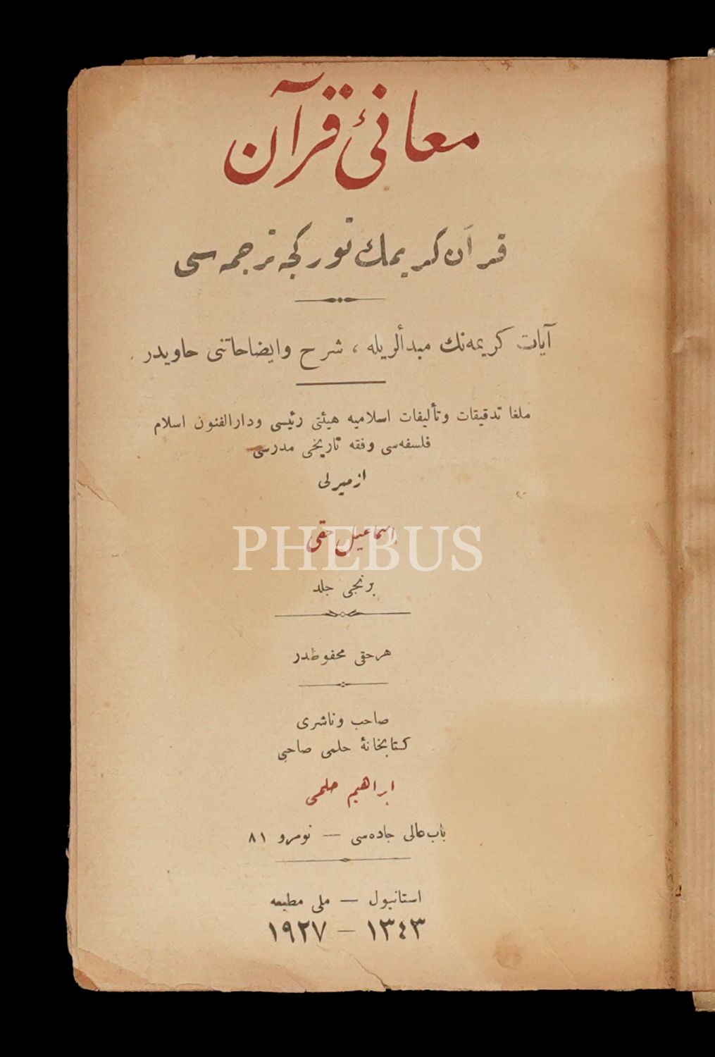 MEAN-İ KUR´AN (KUR´AN-I KERİM´İN TÜRKÇE TERCÜMESİ), İzmirli İsmail Hakkı, 1343, Milli Matbaa, 494+631 sayfa, 13x19 cm...