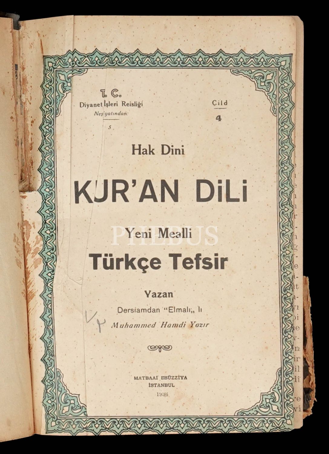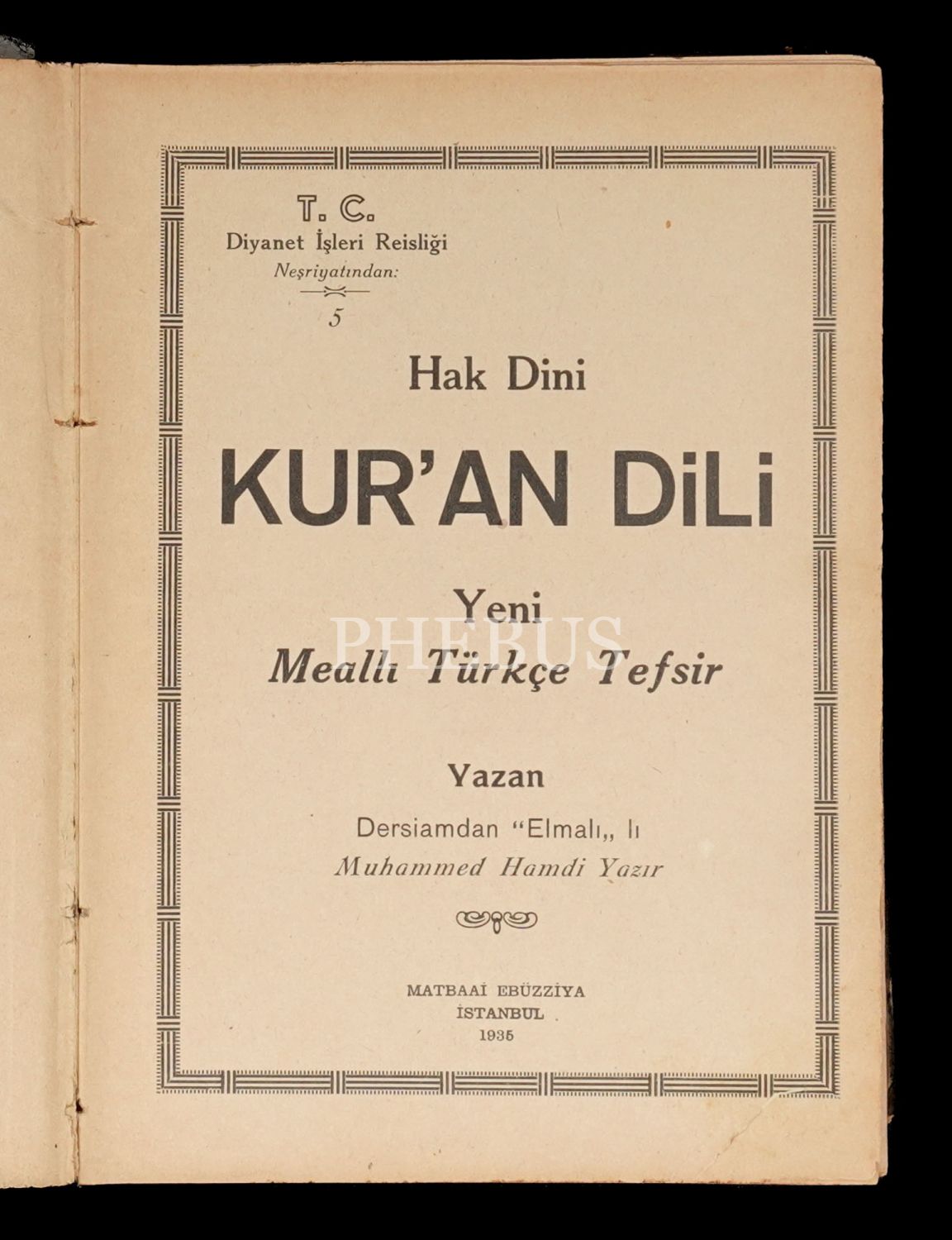 HAK DİNİ KUR´AN DİLİ (Yeni Mealli Türkçe Tefsir), Muhammed Hamdi Yazır (Elmalılı), 1935, T.C. Diyanet İşleri Reisliği Neşriyatı, Matbaa-i Ebuzziya, 16x22 cm...