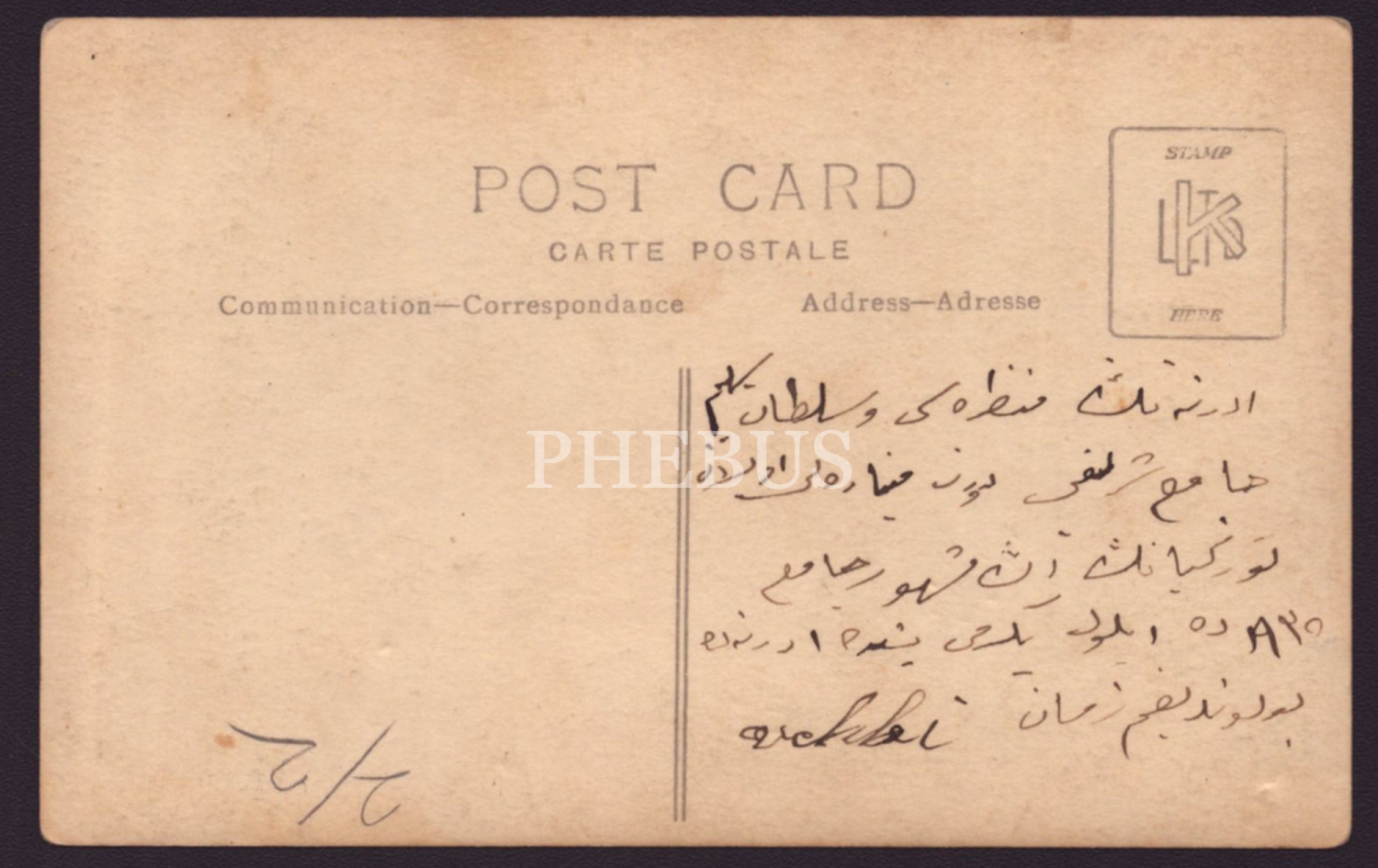 Fotokart´ın arka yüzünde, "Edirne manzarası ve Sultan Selim camii şerifi dört minareli olan Türkiye´nin en meşhur camii. 1925´te Eylül 25´inde Edirne´de bulunduğum zaman" yazılıdır.