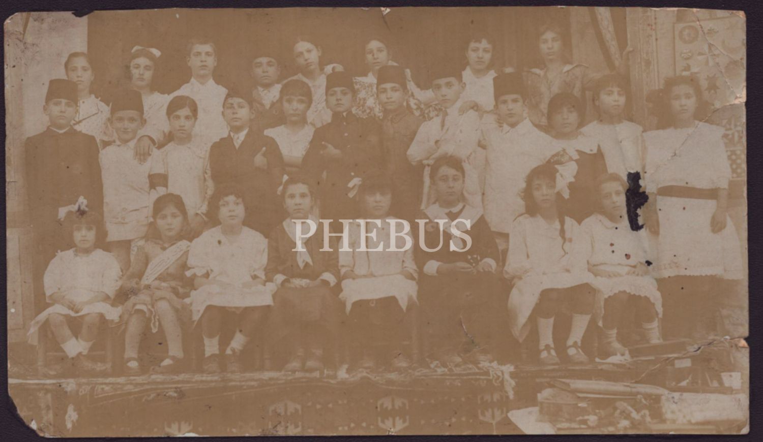 Osmanlı döneminde Tefeyyüz Mektebi´nin öğrencileri ve öğretmenlerinin toplu hatıra fotoğrafı, 16x10 cm...