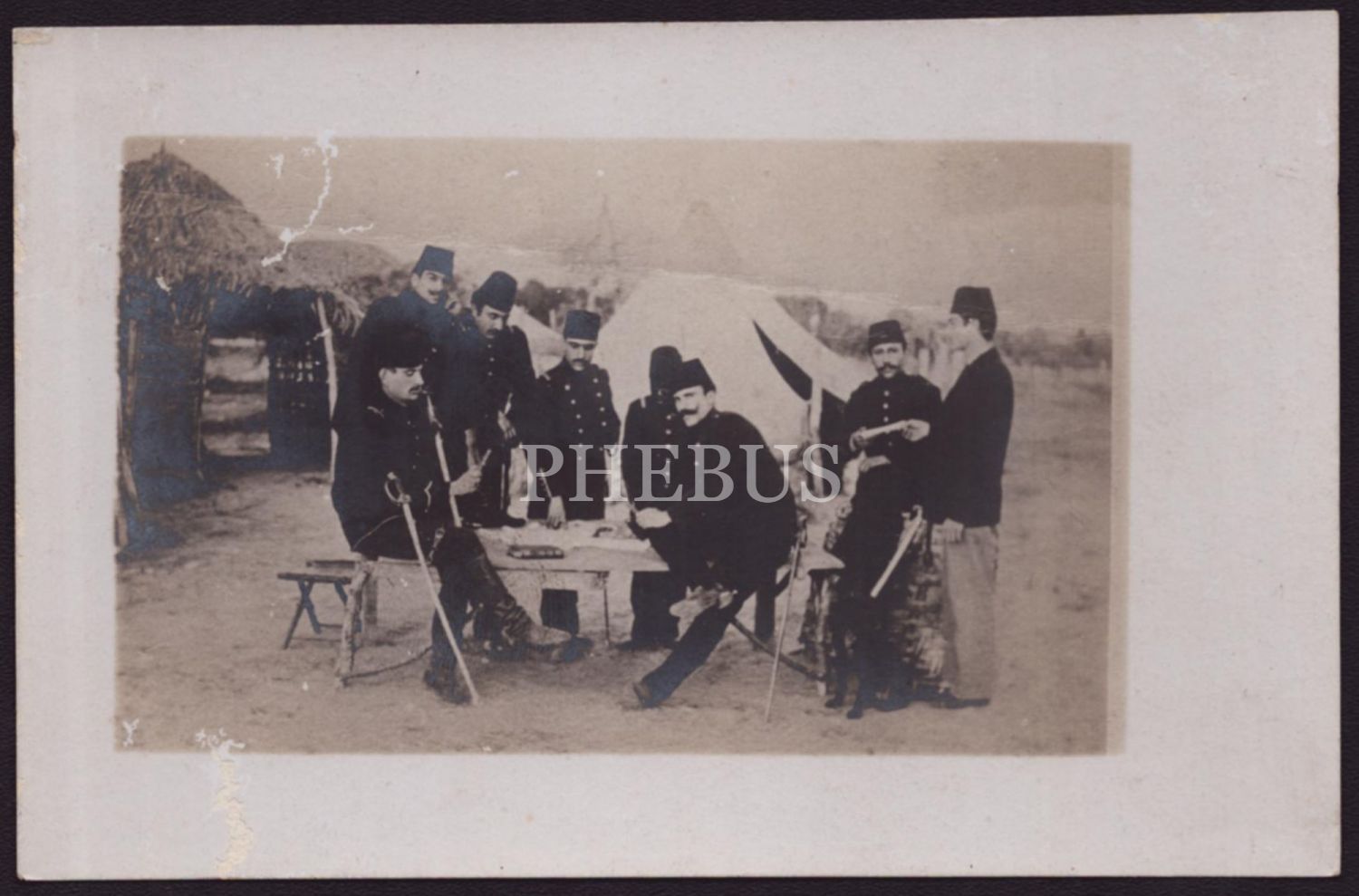 Bir ordugahta istişare halindeki Osmanlı subayları, 14x9 cm...