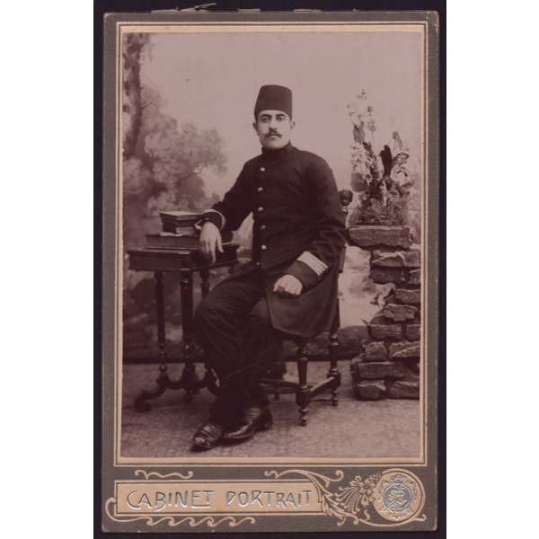 Osmanlı subayının stüdyo hatıra kabin fotoğrafı, 11x17 cm...