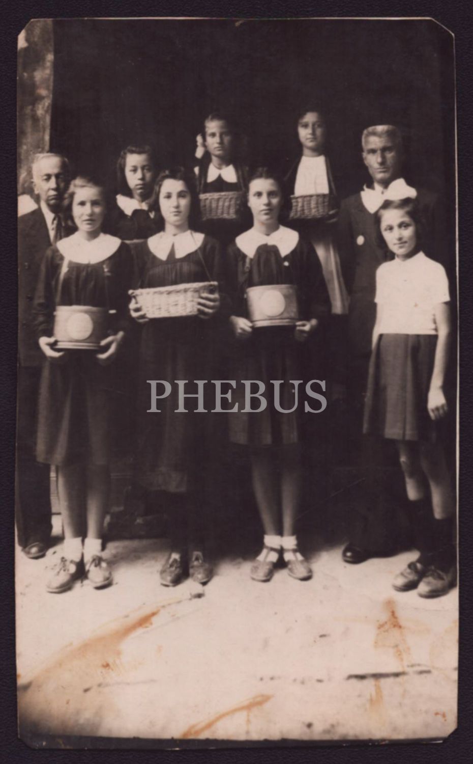Himaye-i Etfal Cemiyeti yararına yardım toplayan üniformalı öğrencilerin fotoğrafı, 9x14 cm...