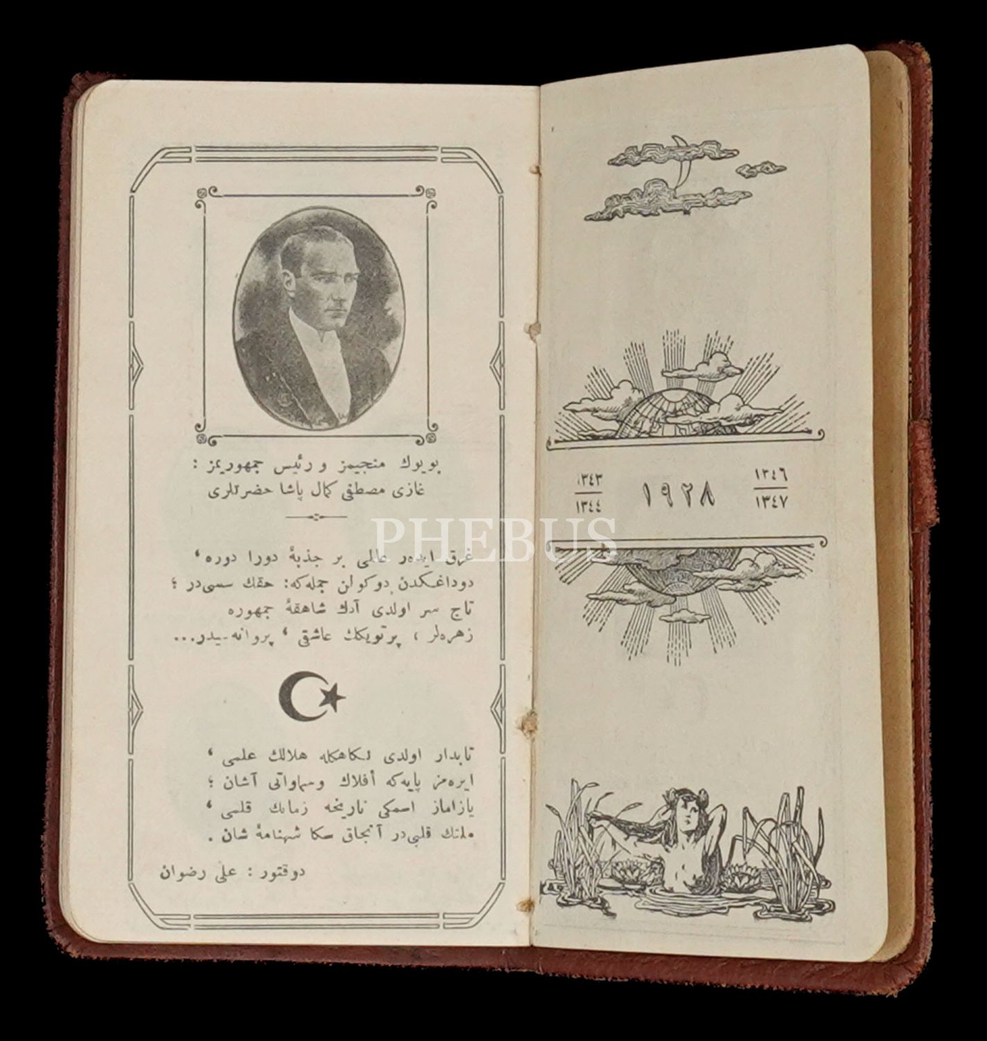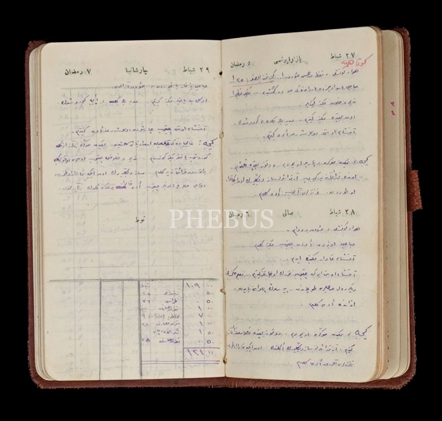 "Mektepliler Pazarı" yazılı deri cildinde Necati Memduh Biraderler Ticarethanesi´nin ajandası,1928, 7x13 cm...