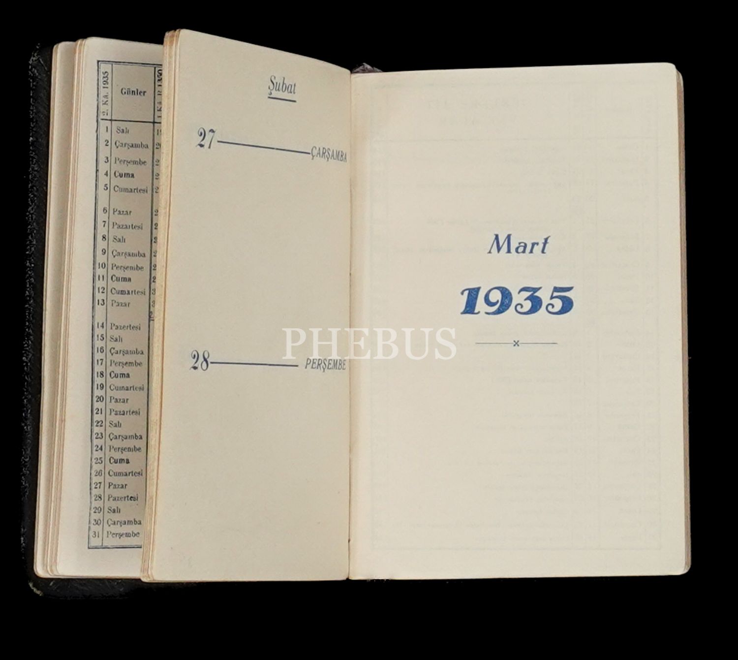 Umum Mütekaidini Askeriye Cemiyeti tarafından 1935 yılında askerler için hazırlanmış takvimli cep günlüğü, 8x12 cm...