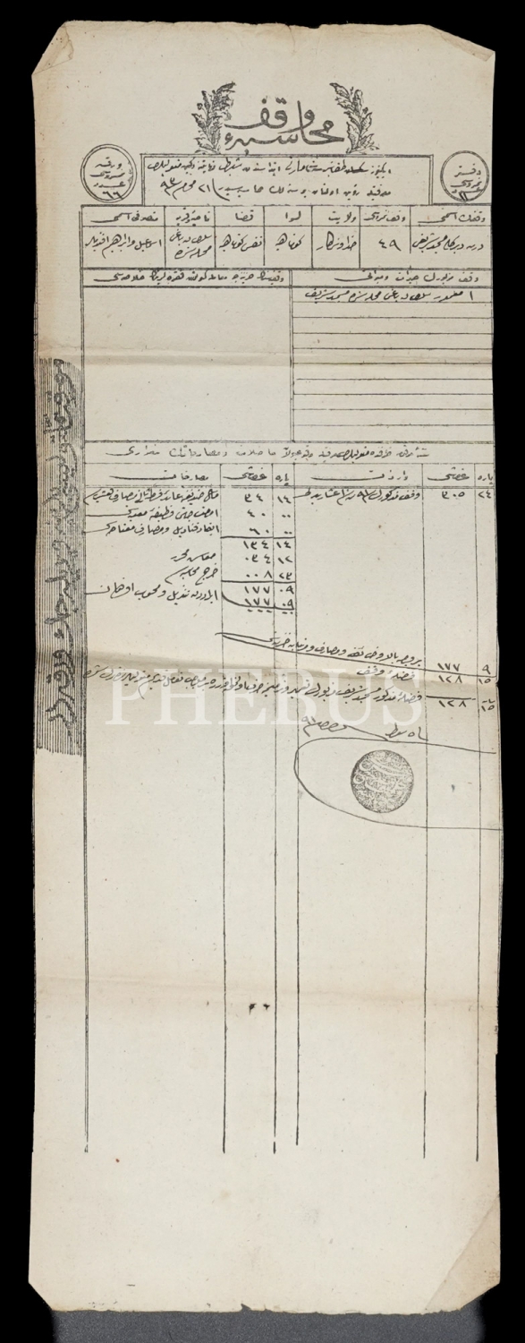 Kütahya´da bulunan Dört Direkli Cami vakfına 1289 senesi Mart ayı ile Şubat ayı arasında yapılan bağışların hesabının yapıldığı evrak, 17x48 cm...