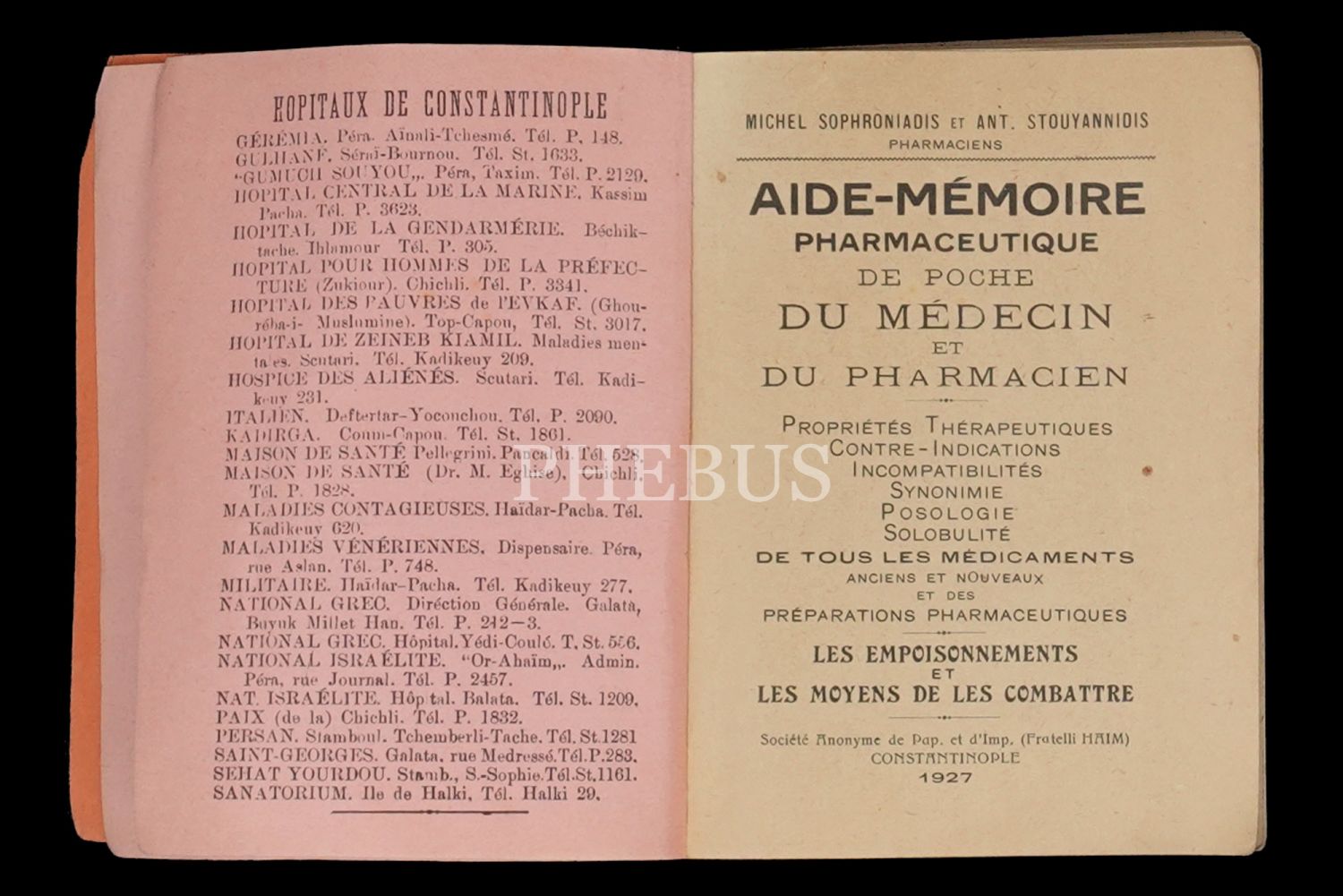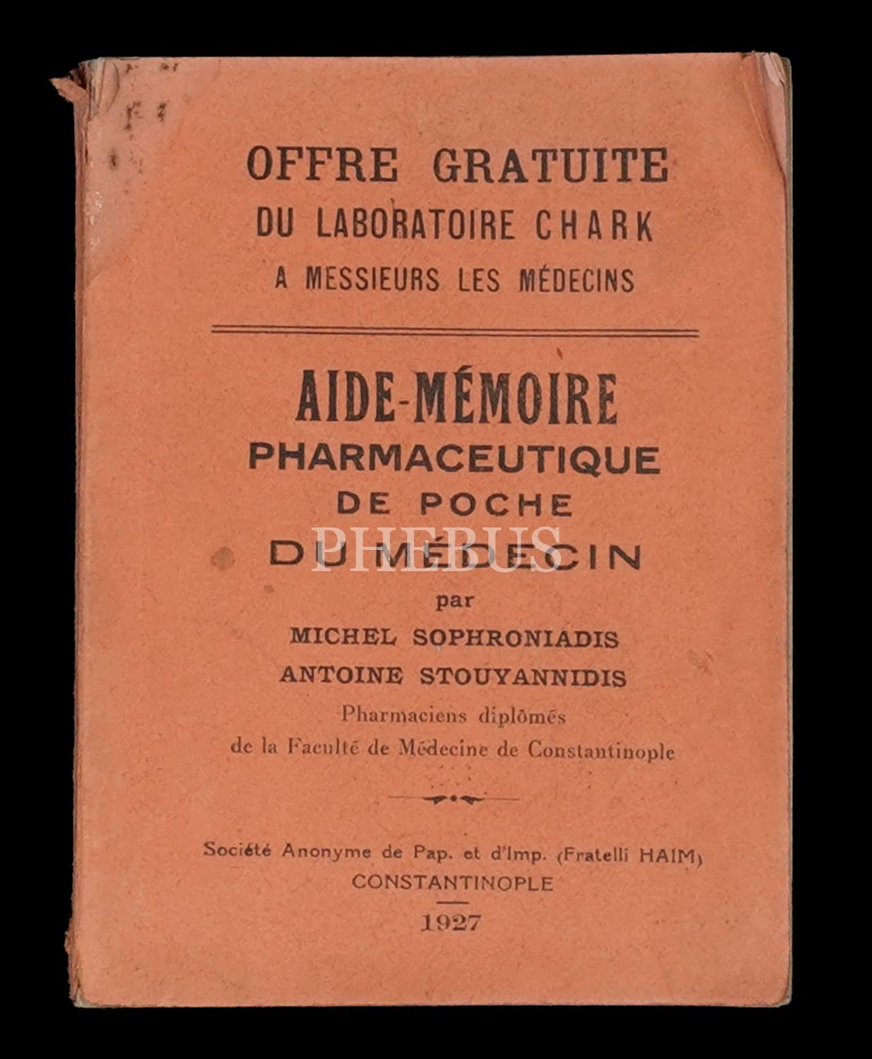 İLAÇ KONTROL LİSTESİ, "chark laboratuvarından beyefendi doktorlara ücretsiz teklif", Michel Sophroniadis- Antoine Stouyannidis, 1927, Constantinople, 255+18 sayfa, 10x13 cm...