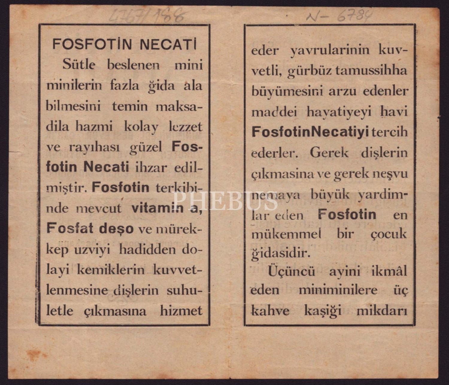 "Fosfotoin Necati (Salih Necati)" reklam kitapçığı, 4 sayfa, 9x15 cm...