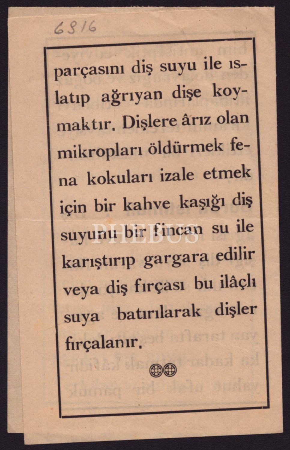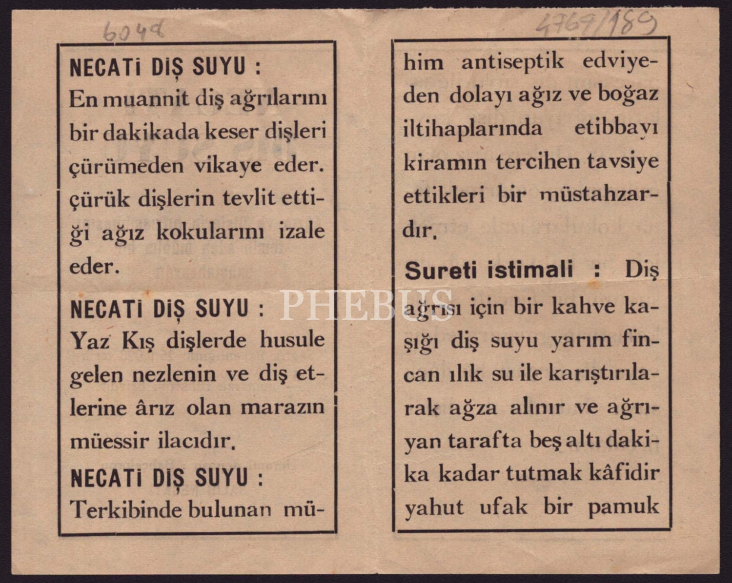 "Ağzın ve dişlerin hıfzıssıhhasını temin eden mühim bir müstahzardır."