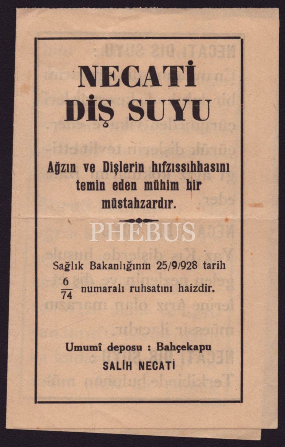 "Necati Diş Suyu (Salih Necati)" reklam kitapçığı, 4 sayfa, 9x15 cm...
