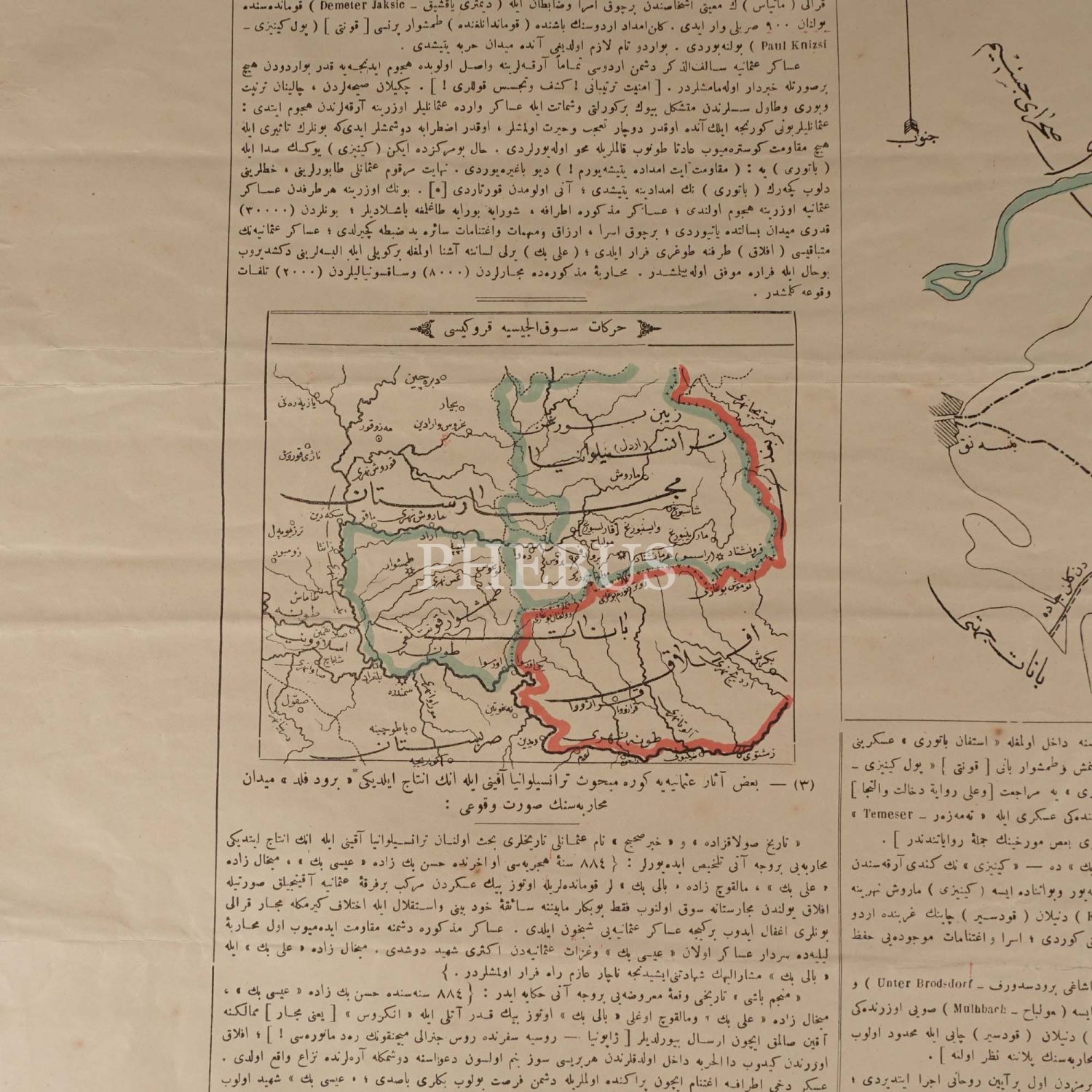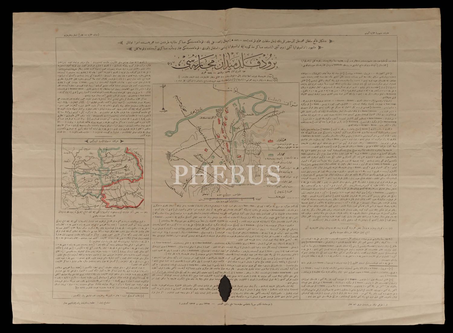 Askeri Müze´nin Kurucusu Ferik Ahmed Muhtar Paşa´nın Muharebât-ı Meşhûre-i Osmaniye Albümü (Osmanlı´nın Meşhur Savaşları Albümü) ´nden çıkma, "Brodfolde Meydan Muharebesi" başlıklı açıklamalı savaş krokisi, 1325, Mekteb-i Harbiye-i Şahane Matbaası, 68x51 cm...