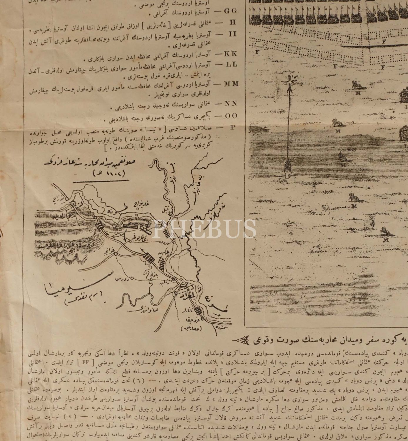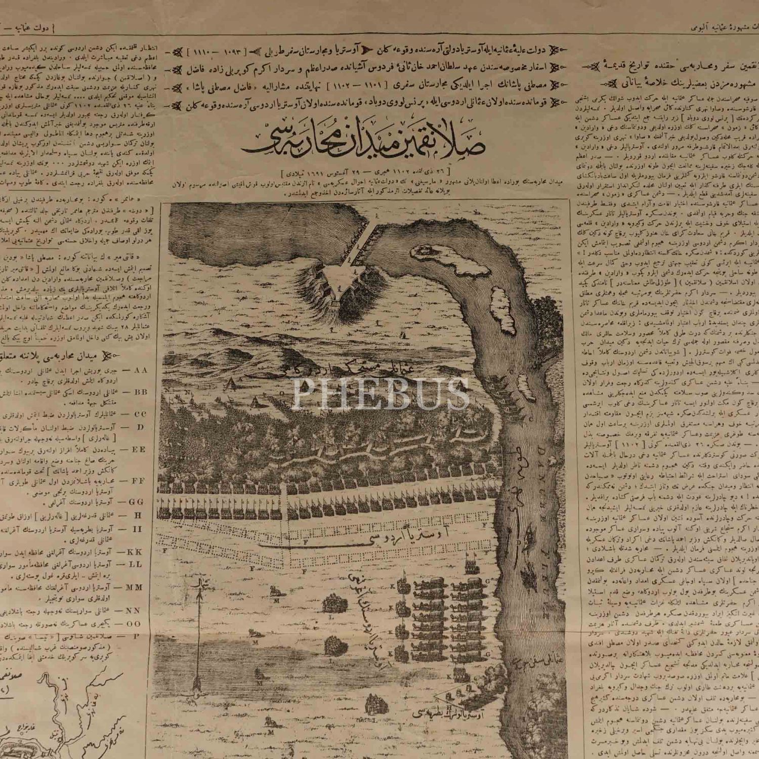 Askeri Müze´nin Kurucusu Ferik Ahmed Muhtar Paşa´nın Muharebât-ı Meşhûre-i Osmaniye Albümü (Osmanlı´nın Meşhur Savaşları Albümü) ´nden çıkma, "Salankamin Meydan Muharebesi" başlıklı açıklamalı savaş krokisi, 1320, Mekteb-i Fünun Harbiye-i Şahane Matbaası, 68x51 cm...