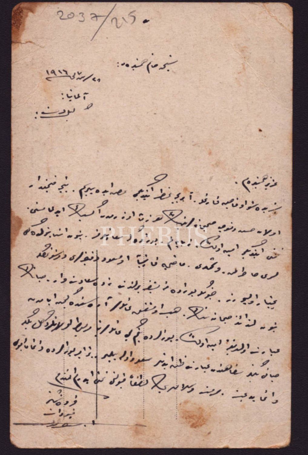 Kartpostallardan birinin arkasında 1916 tarihli Osmanlıca mektup yer almaktadır.