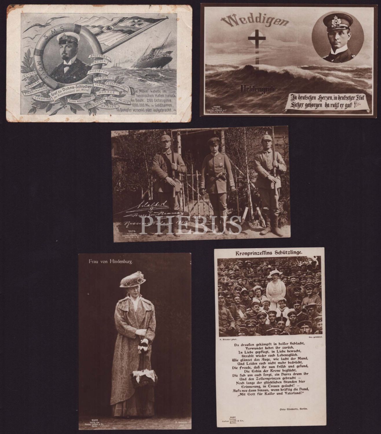 Birinci Dünya Savaşı´nın önemli Alman subayları ve Mareşal Hindenburg´un eşinin fotoğraflarından oluşan 5 adet Alman baskı kartpostal, 14x9 cm...
