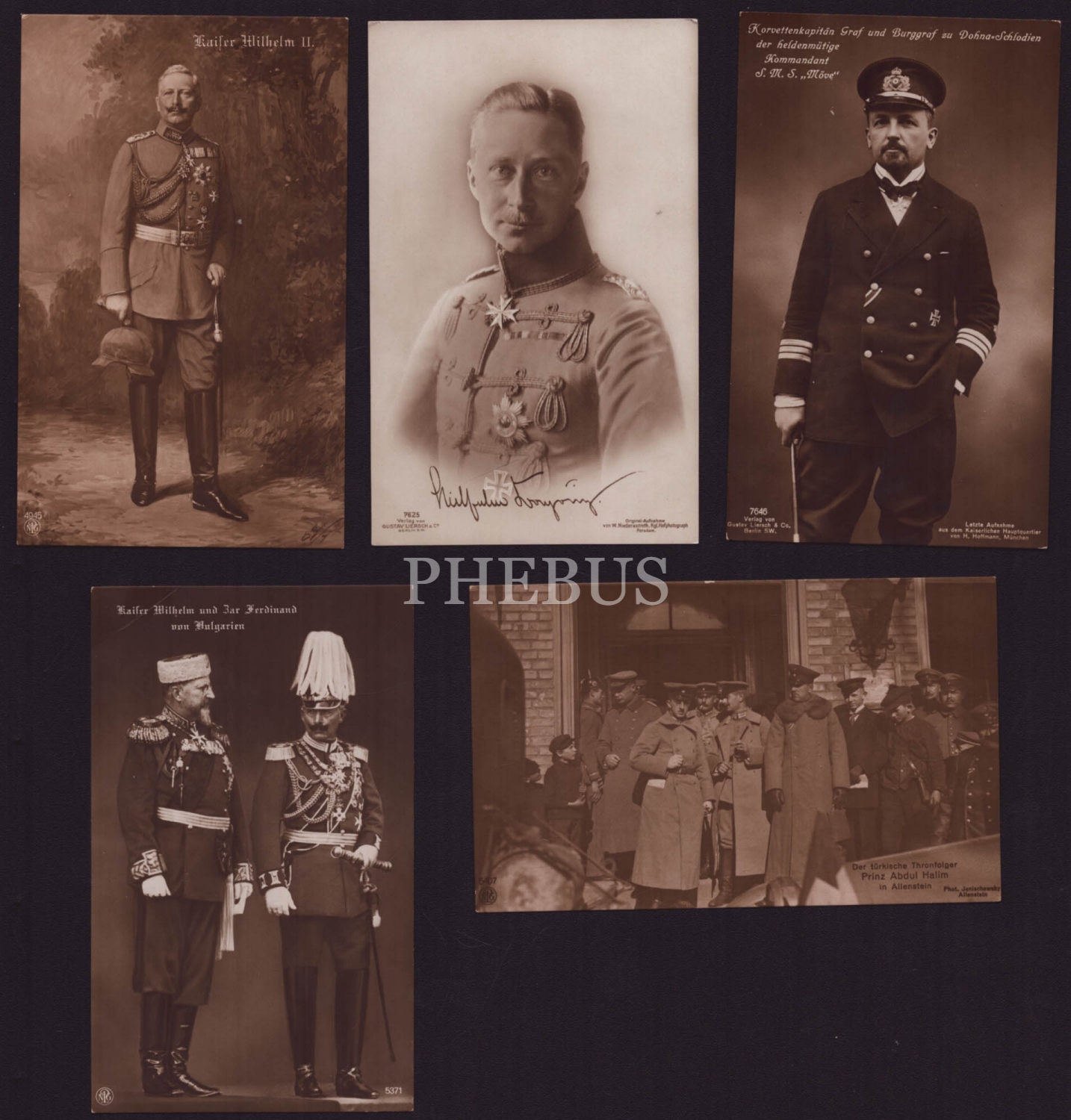Şehzade Abdülhalim, Kaiser II. Wilhelm ve Bulgaristan Çarı Ferdinand´ın göründüğü 5 adet Alman baskı kartpostal, 14x9 cm...