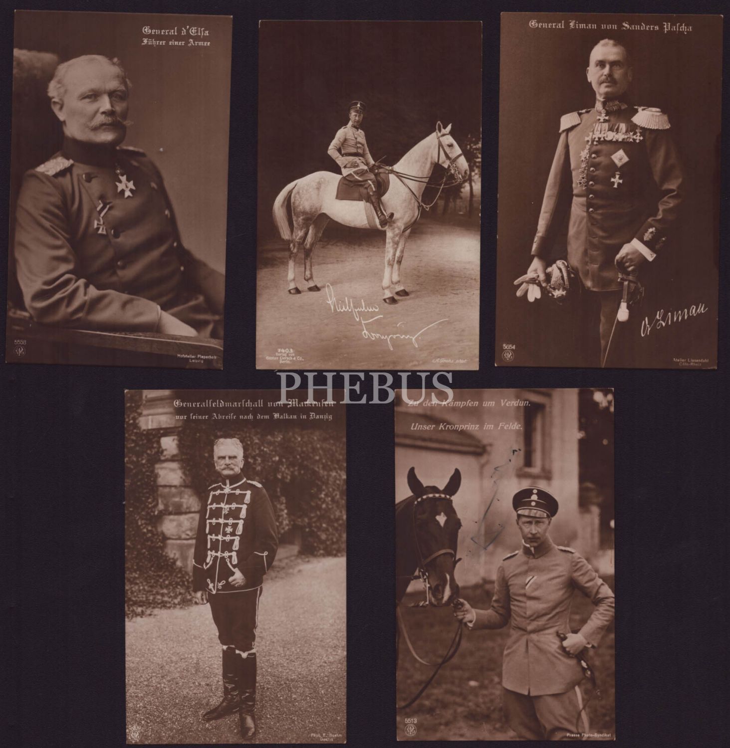 Birinci Dünya Savaşı´nın önemli Alman subaylarının fotoğraflarından oluşan 5 adet Alman baskı kartpostal, 14x9 cm...
