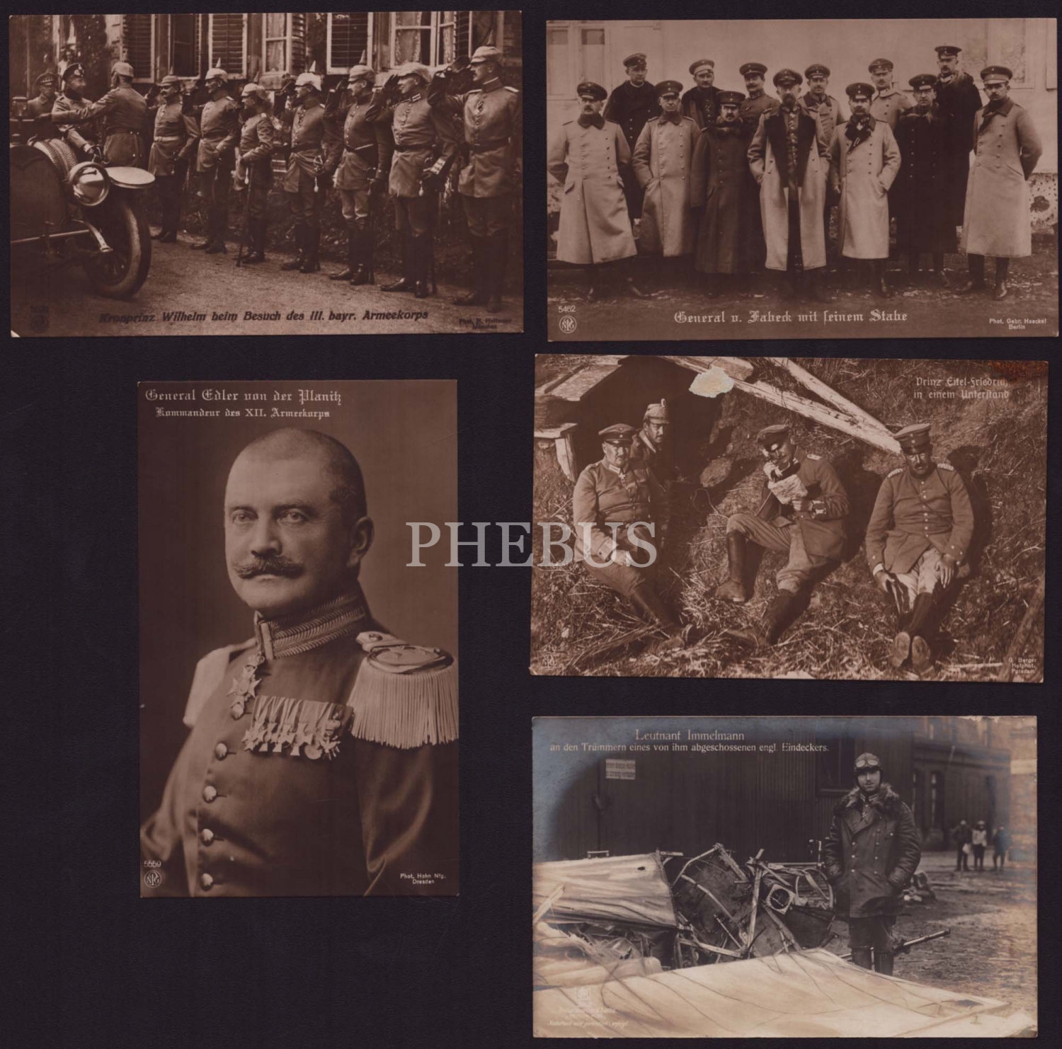 Birinci Dünya Savaşı´nın önemli Alman subaylarının fotoğraflarından oluşan 5 adet Alman baskı kartpostal, 14x9 cm...