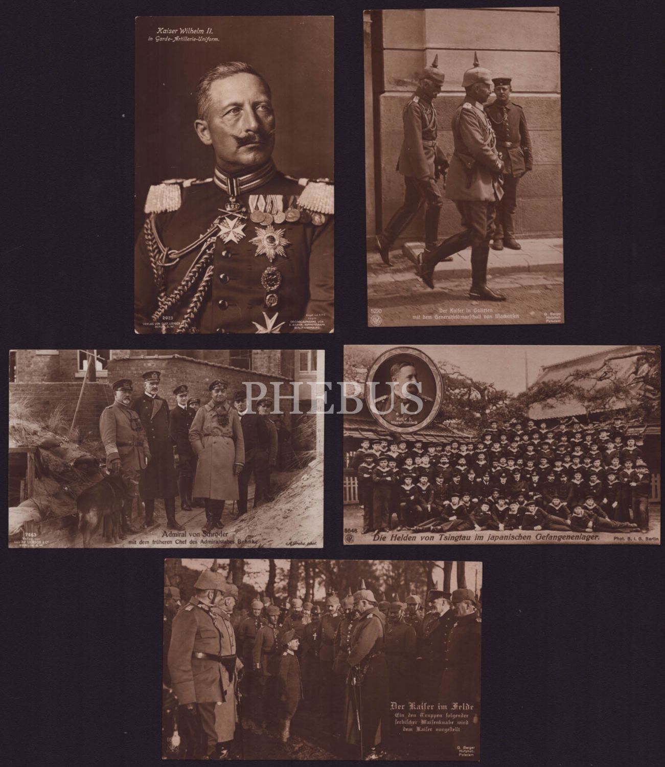 Kasier II. Wilhelm ve Birinci Dünya Savaşı´nın önemli Alman subaylarının fotoğraflarından oluşan 5 adet Alman baskı kartpostal, 14x9 cm...