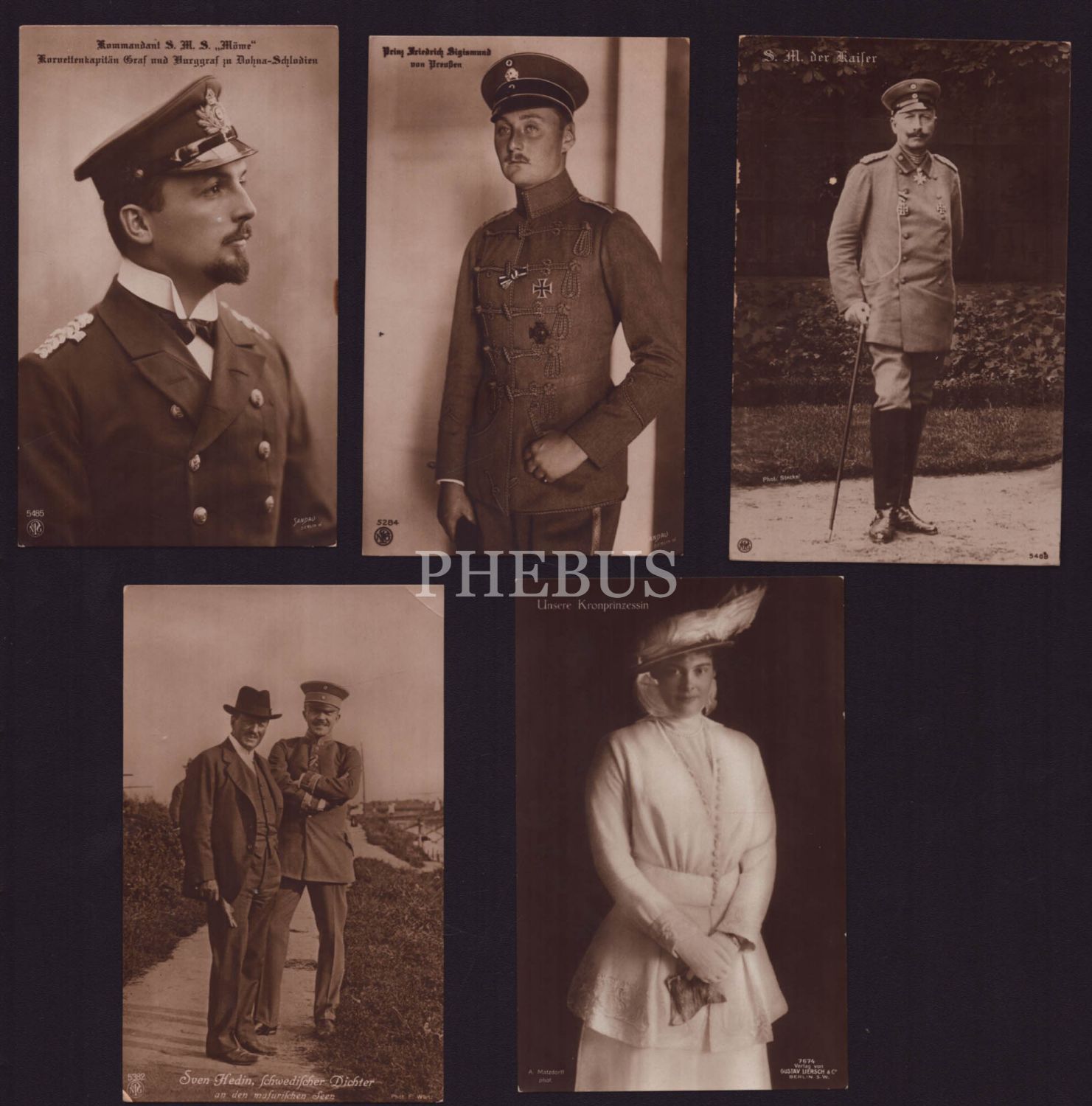 Birinci Dünya Savaşı´nın önemli Alman subaylarının ve Alman prensesinin göründüğü 5 adet Alman baskı kartpostal, 14x9 cm...