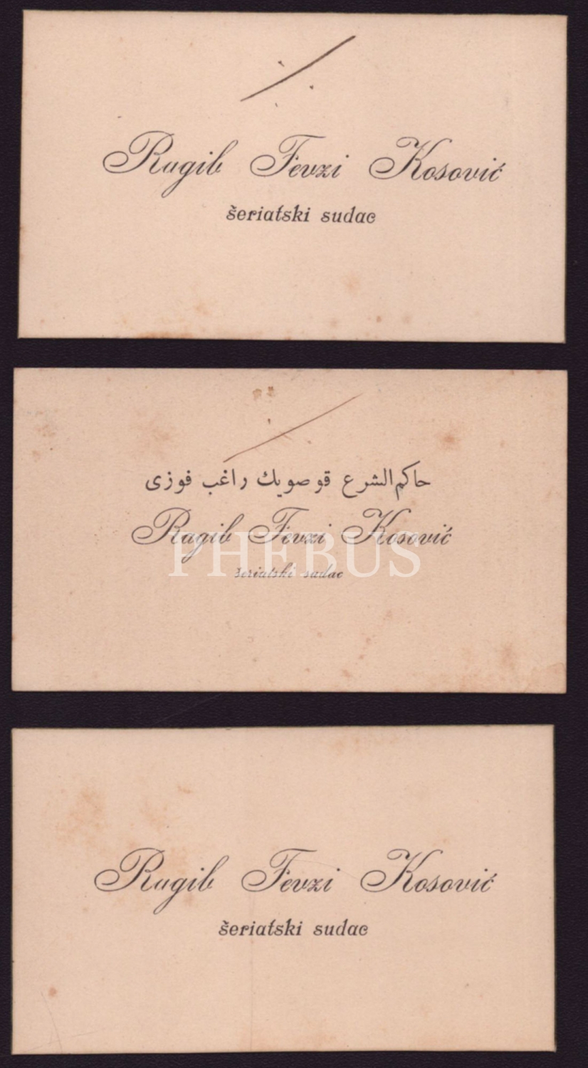 Şeriat Hakimi Ragıp Fevzi Kosoviç´in 3 adet kartviziti, 9x5 cm...