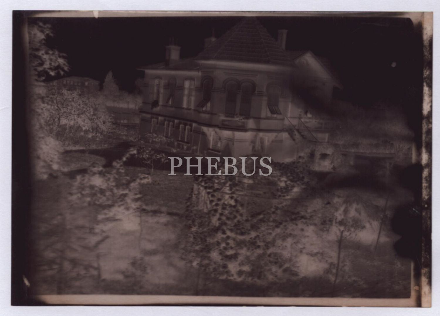 Kuleli bir köşkün negatif fotoğrafı, 12x8 cm...