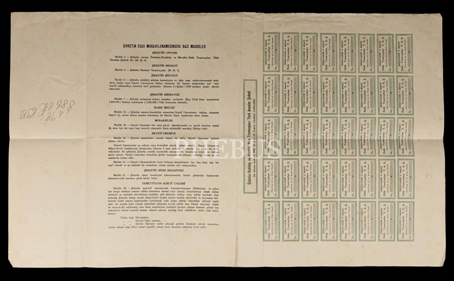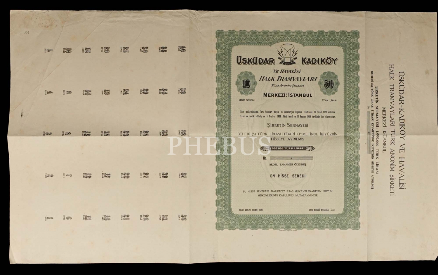 Üsküdar-Kadıköy ve Havalisi Halk Tramvayları Anonim Şirketi, 1937 tarihli On aksiyon hisse senedi...