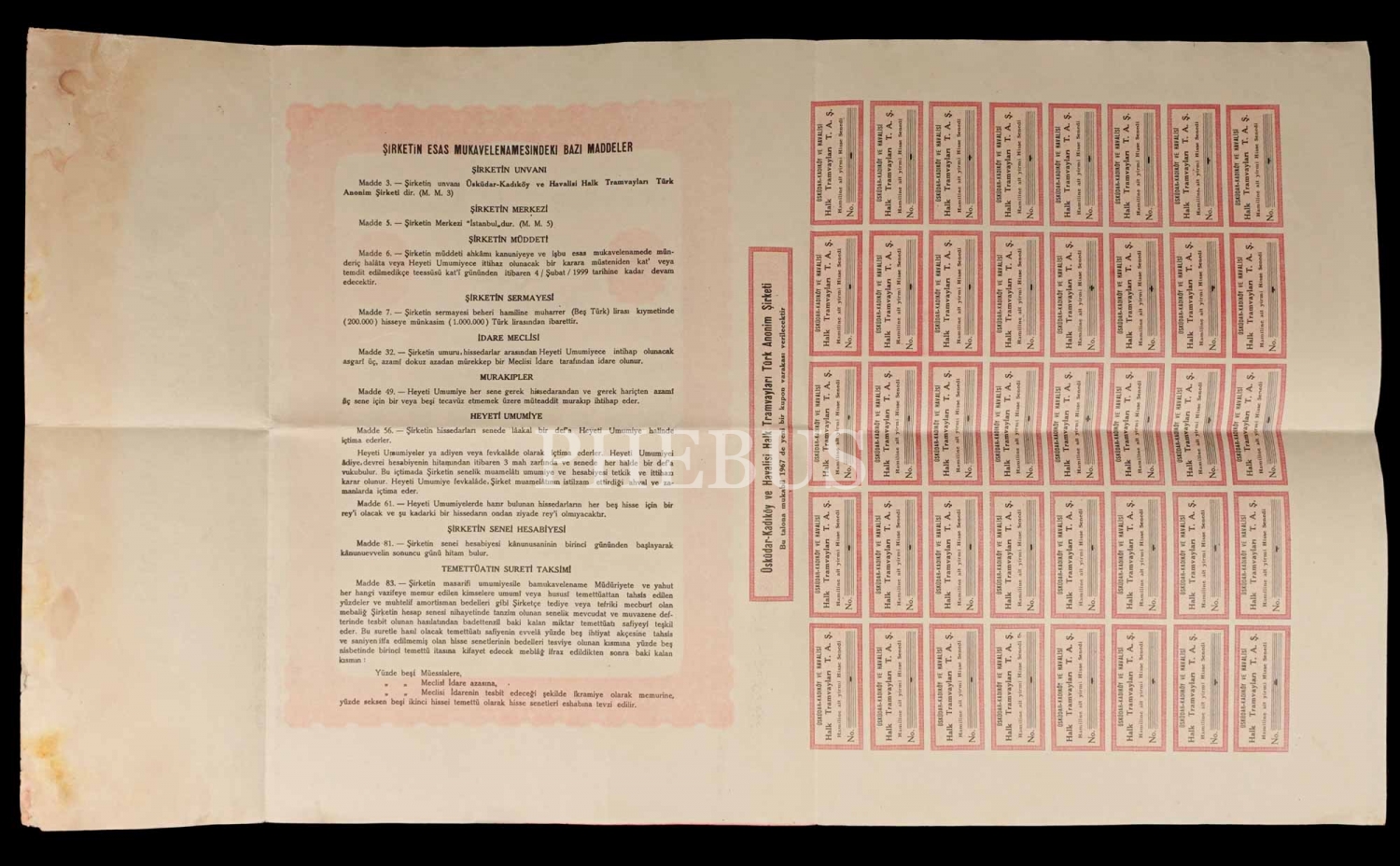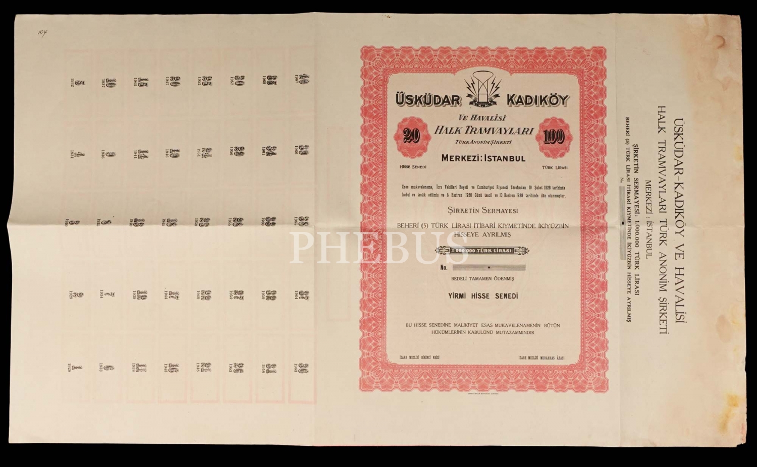 Üsküdar-Kadıköy ve Havalisi Halk Tramvayları Anonim Şirketi, 1937 tarihli yirmi aksiyon hisse senedi...