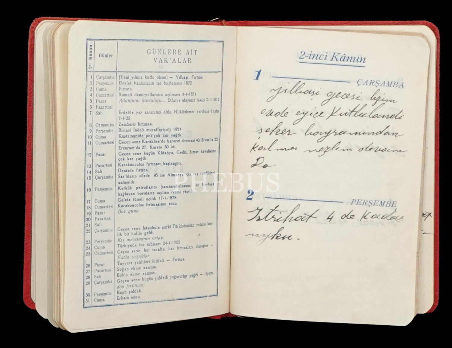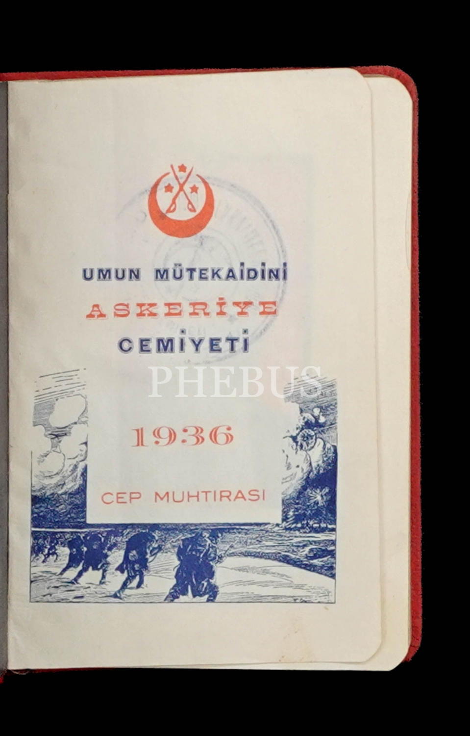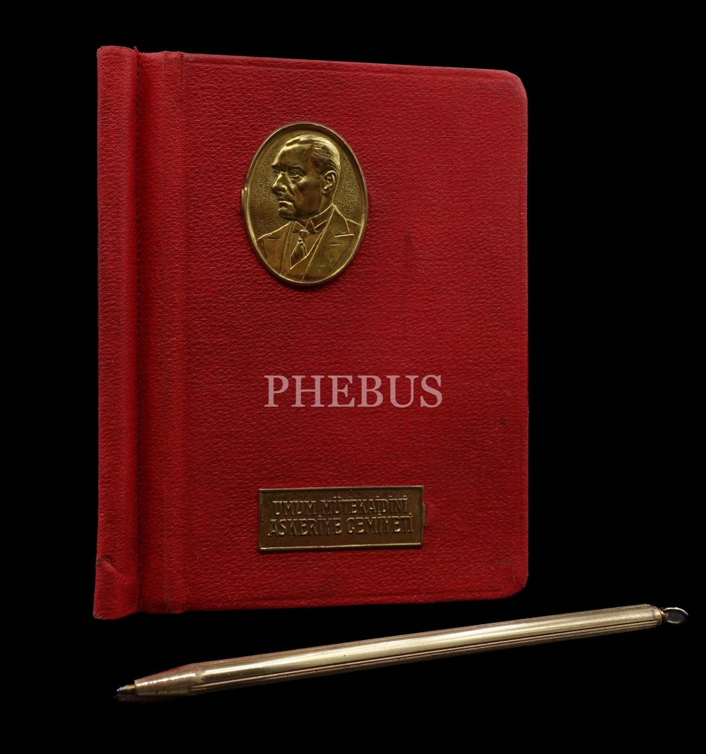 Umum Mütekaidini Askeriye Cemiyeti (Türkiye Emekli Subaylar Derneği) tarafından 1936 senesinde yayımlanan, gofre Atatürk görselli ajanda, 10x12 cm...