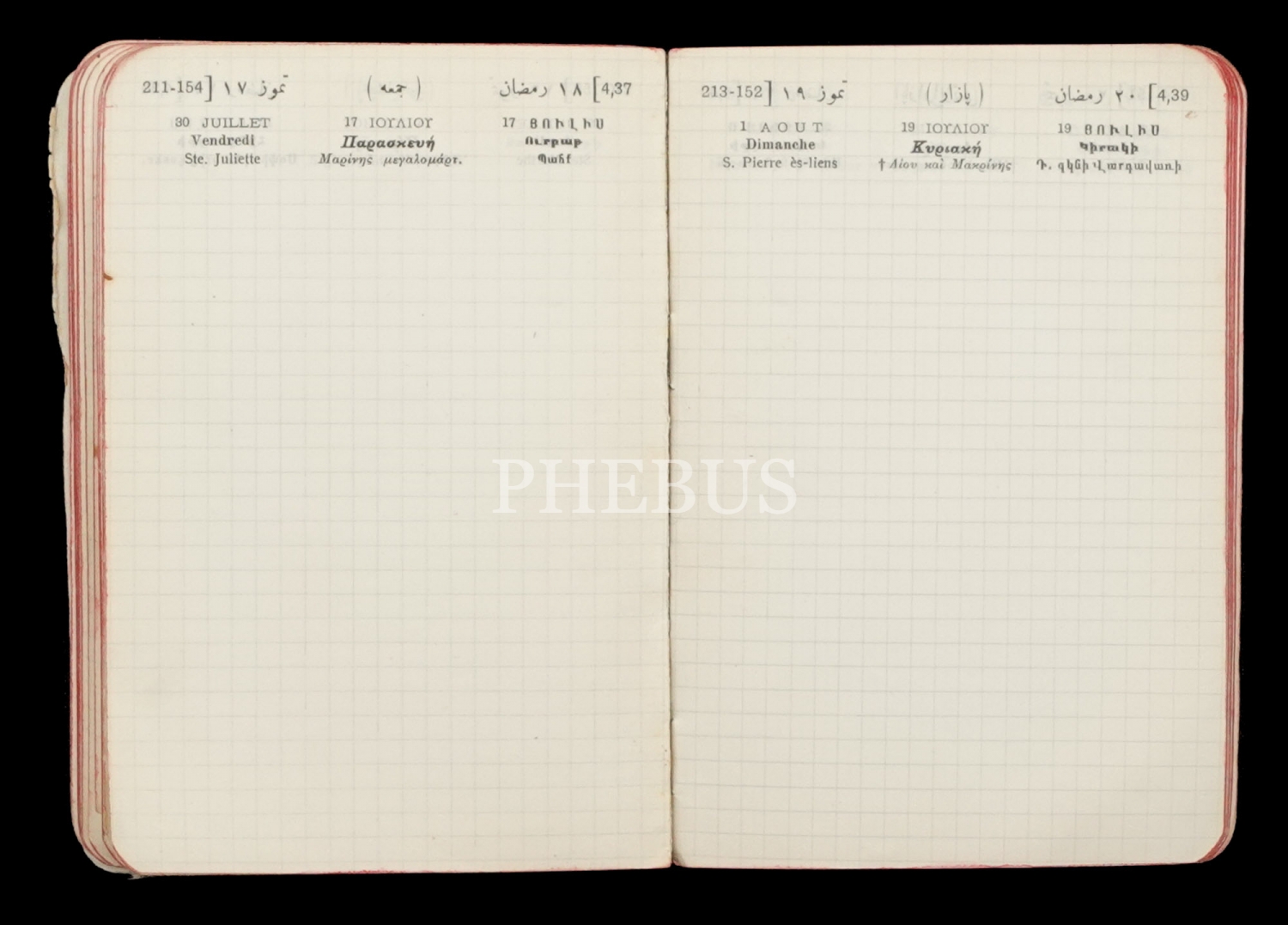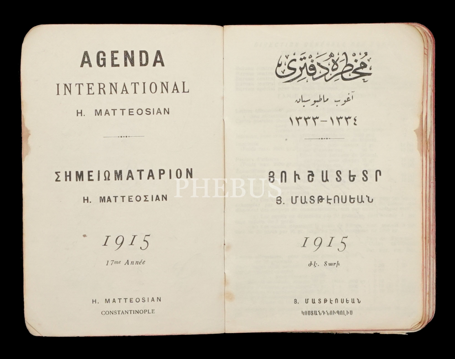 1915 yılı Yeni Muhtıra Defteri, H. Matteosian, Rumca, Ermenice, Fransızca ve Osmanlıca, 9x14 cm...