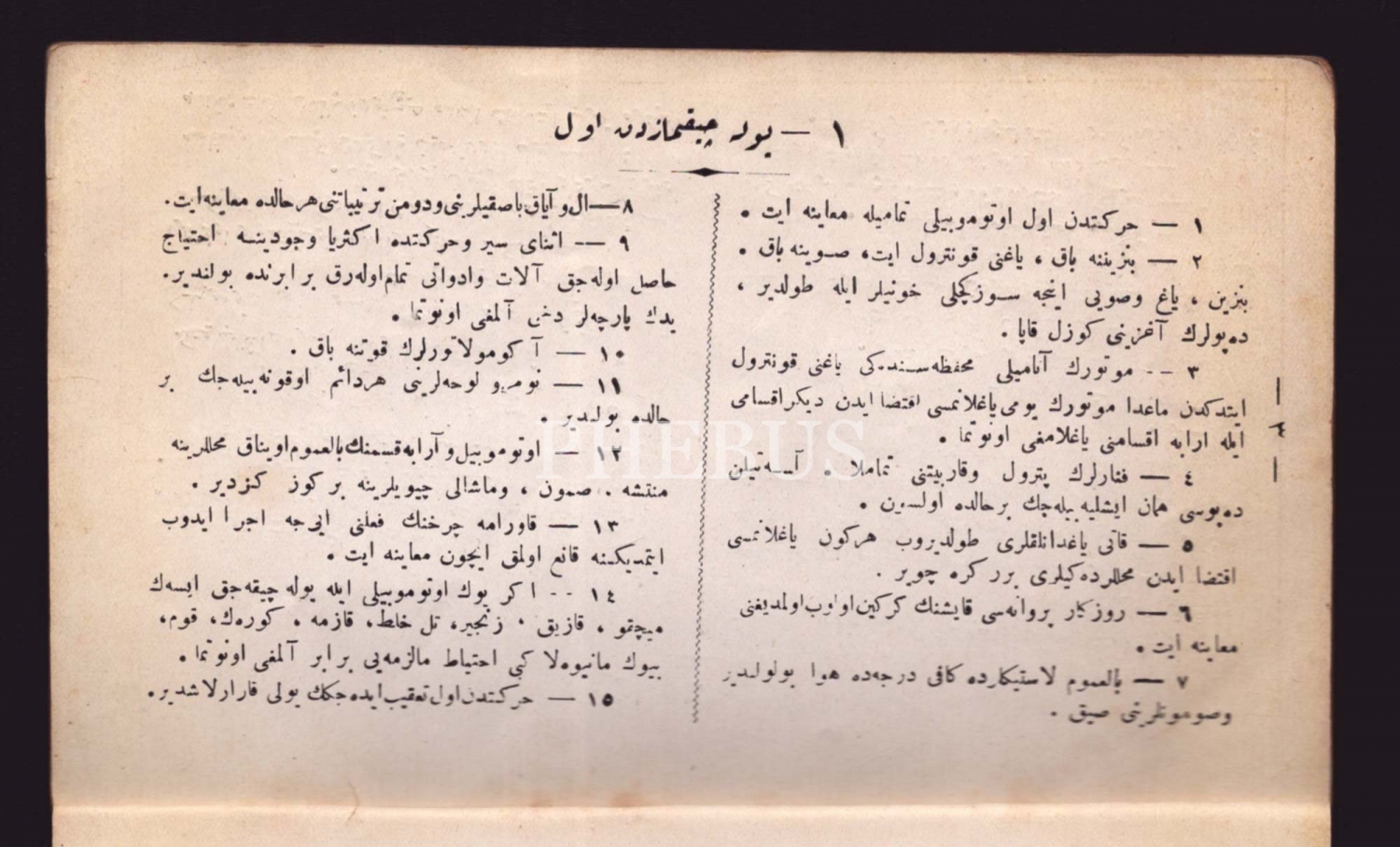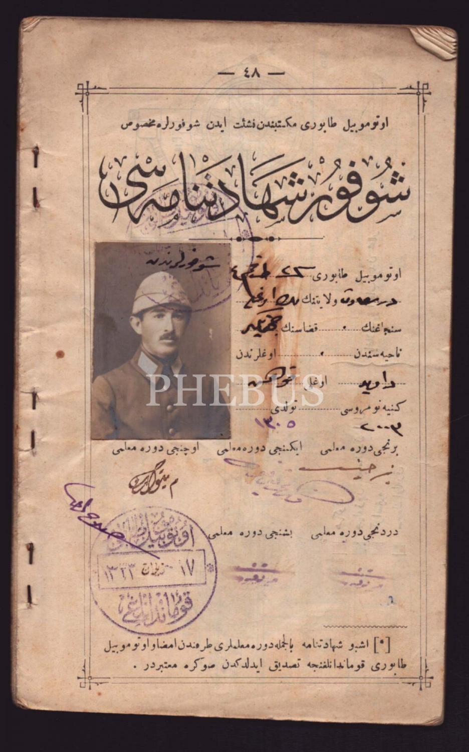 Satışa sunulan bu diploma, Birinci Dünya Savaşı´nın başladığı yıl, Beyoğlu´nda ikamet eden Kohen isimli gayrimüslim bir Türk askerine aittir. Diplomanın ilk sayfalarında, şoförün sürüşün öncesinde, sürüş sırasında ve sürüşün sonrasında uyması gereken kurallar maddeler halinde yazılmıştır. Sonrasında aracın arızalarının nasıl çözüleceğini anlatan bir rehber ve daha sonrasında da aracın aksamını tanıtan şemalar yer almaktadır. Diploma bu kitapçığın en sonunda yer alır.