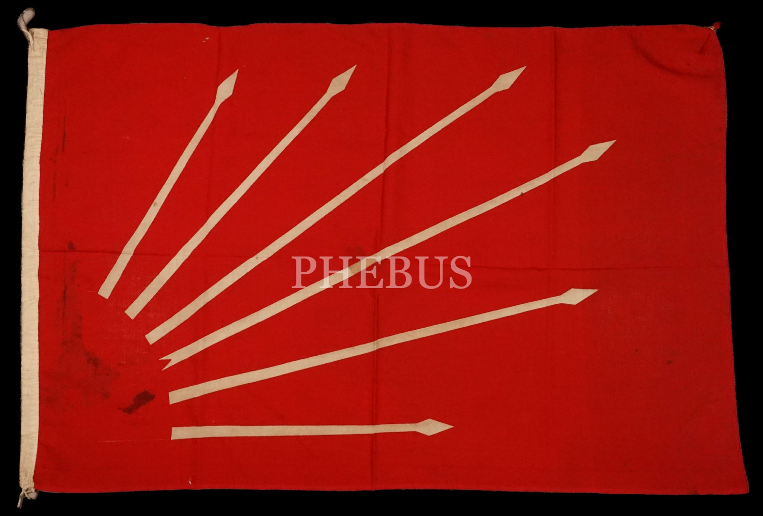 Cumhuriyet Halk Partisi´nin temel ilkelerini temsil eden "Altı Ok" simgesinin yer aldığı yün bayrak, 150x98 cm...