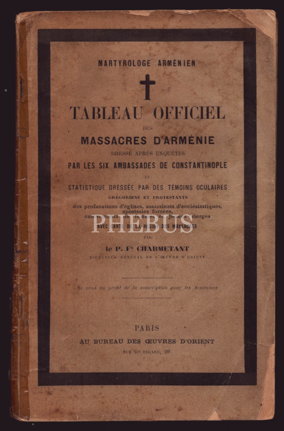 MARTYROLOGE ARMÉNIEN. TABLEAU OFFICIEL, P. Fx Charmetant, Paris Au Bureau Des Ceuvres D´orient, 96 sayfa, 14x22 cm...