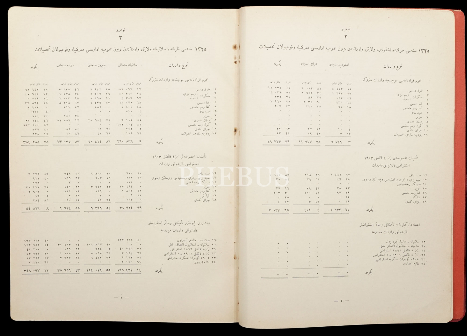1325 ile 1327 seneleri arasında Rumeli Vilayeti ve diğer vilayetlerden tahsil edilen gelirlerin yazıldığı varidat (gelir) mecmuası, 24x33 cm...