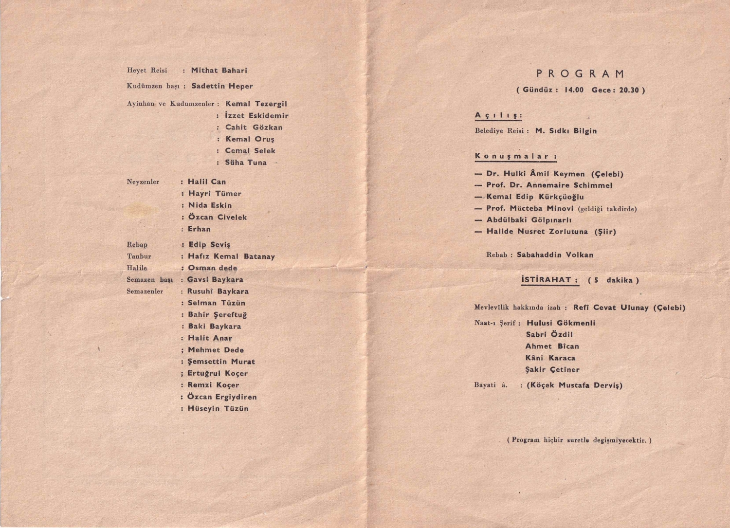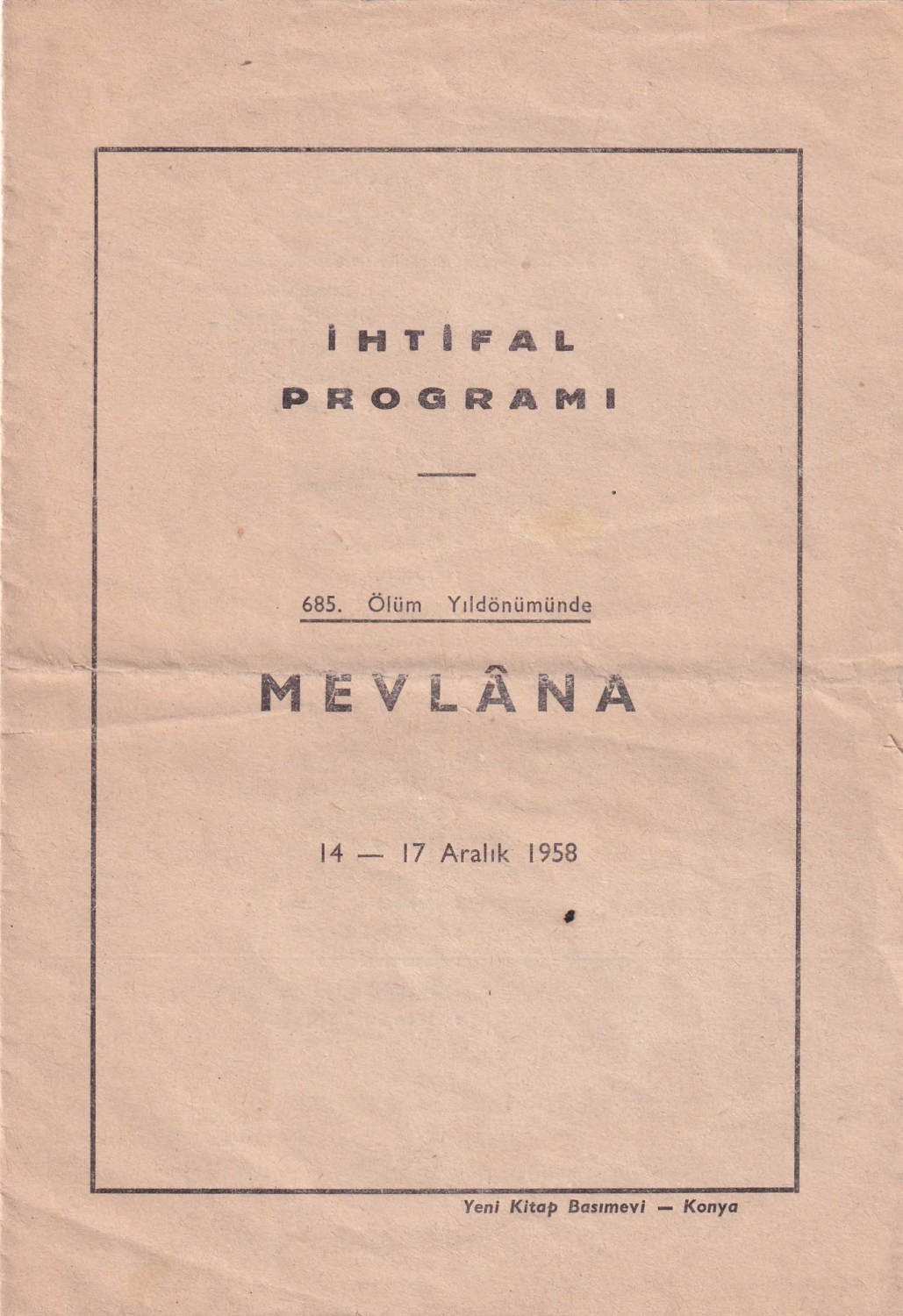 İhtifal Programı, 685. Ölüm Yıldönümünde Mevlana, 1958, Konya, 14x20 cm