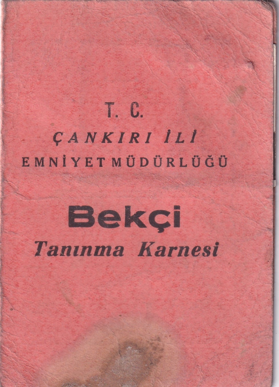 T.C. Çankırı ili emniyet müdürlüğü bekçi tanıma karnesi, 8x11 cm