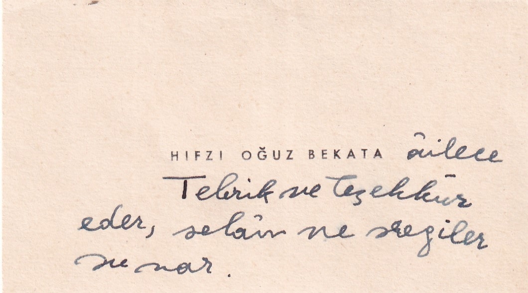 Hıfzı Oğuz Bekata antetli zarf ve kartvizit, 10x8 cm