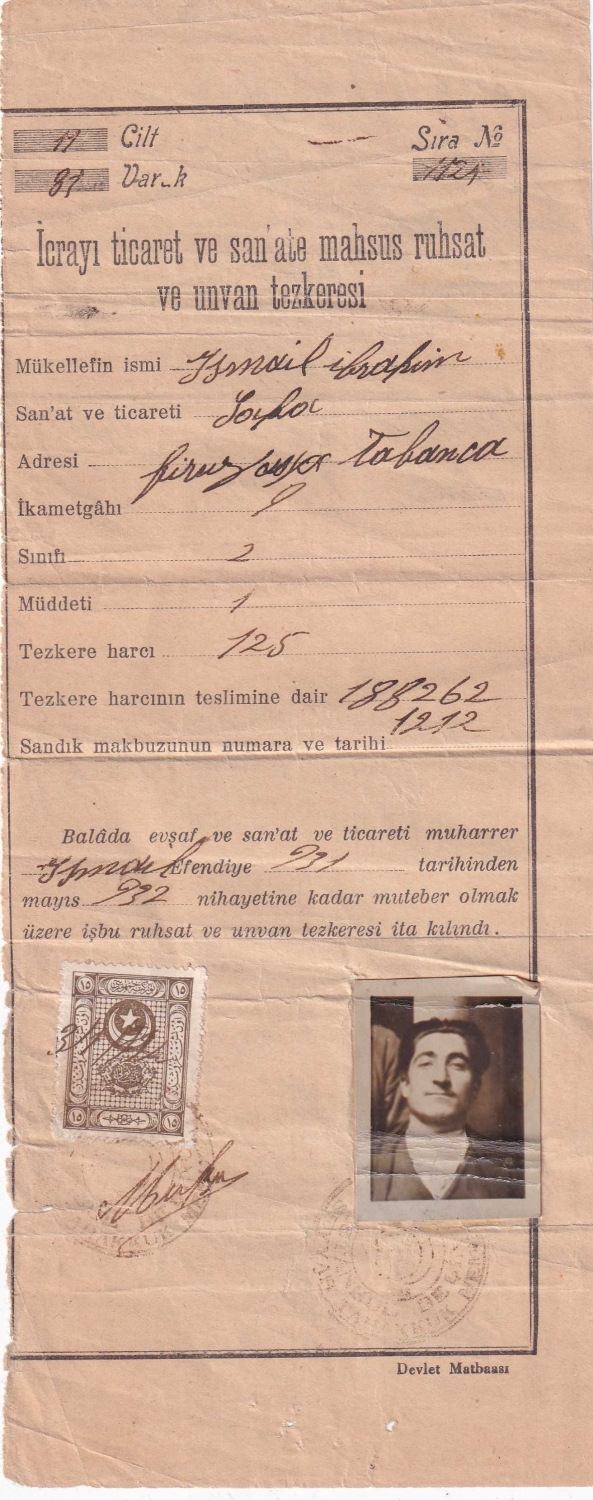 İcrayı ticaret ve sa'ate mahsus ruhsat ve unvan tezkeresi, 11x28 cm