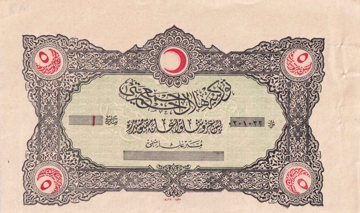 Osmanlıca Hilal-i Ahmer Cemiyeti iane makbuzu