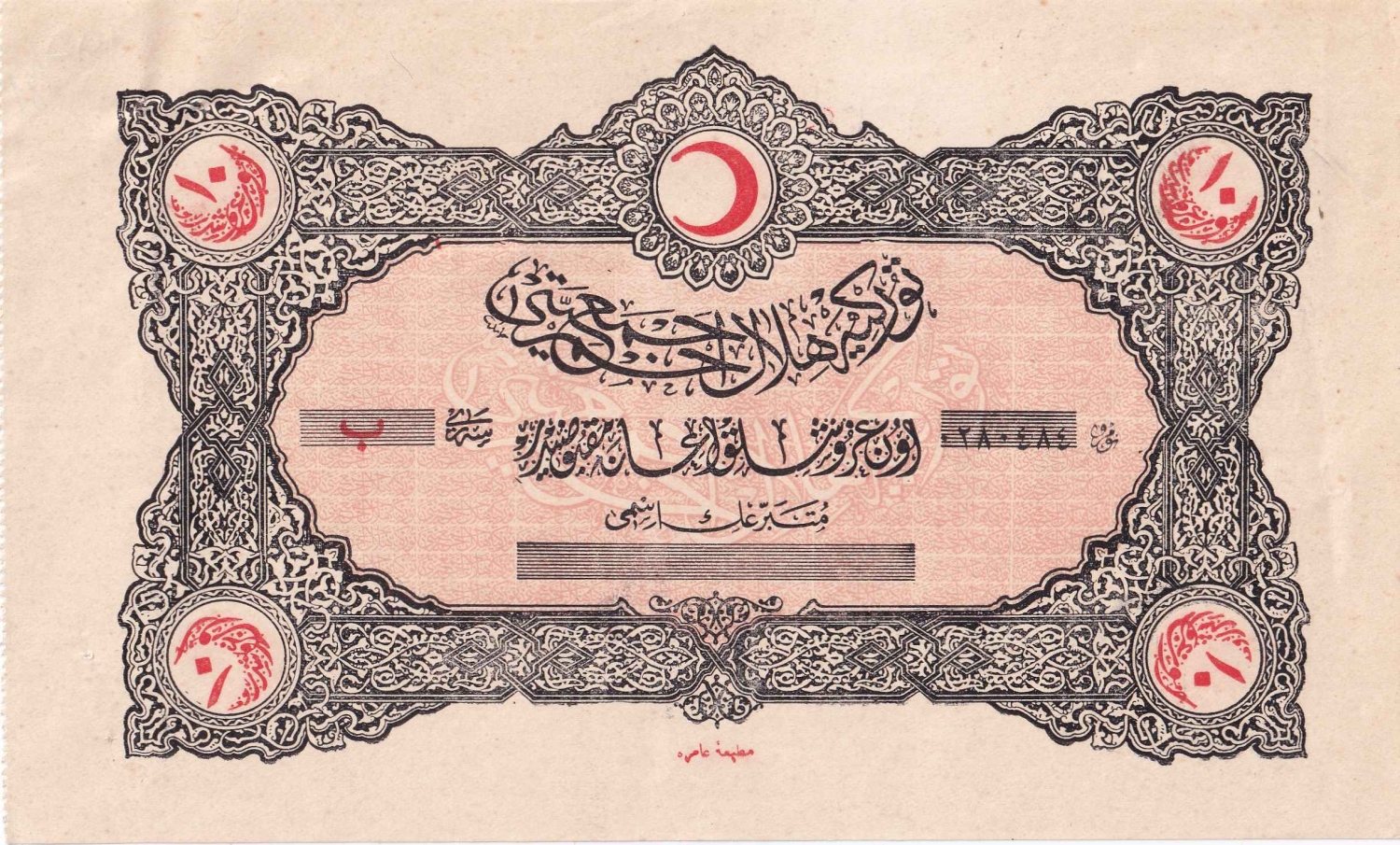 Osmanlıca Hilal-i Ahmer Cemiyeti iane makbuzu