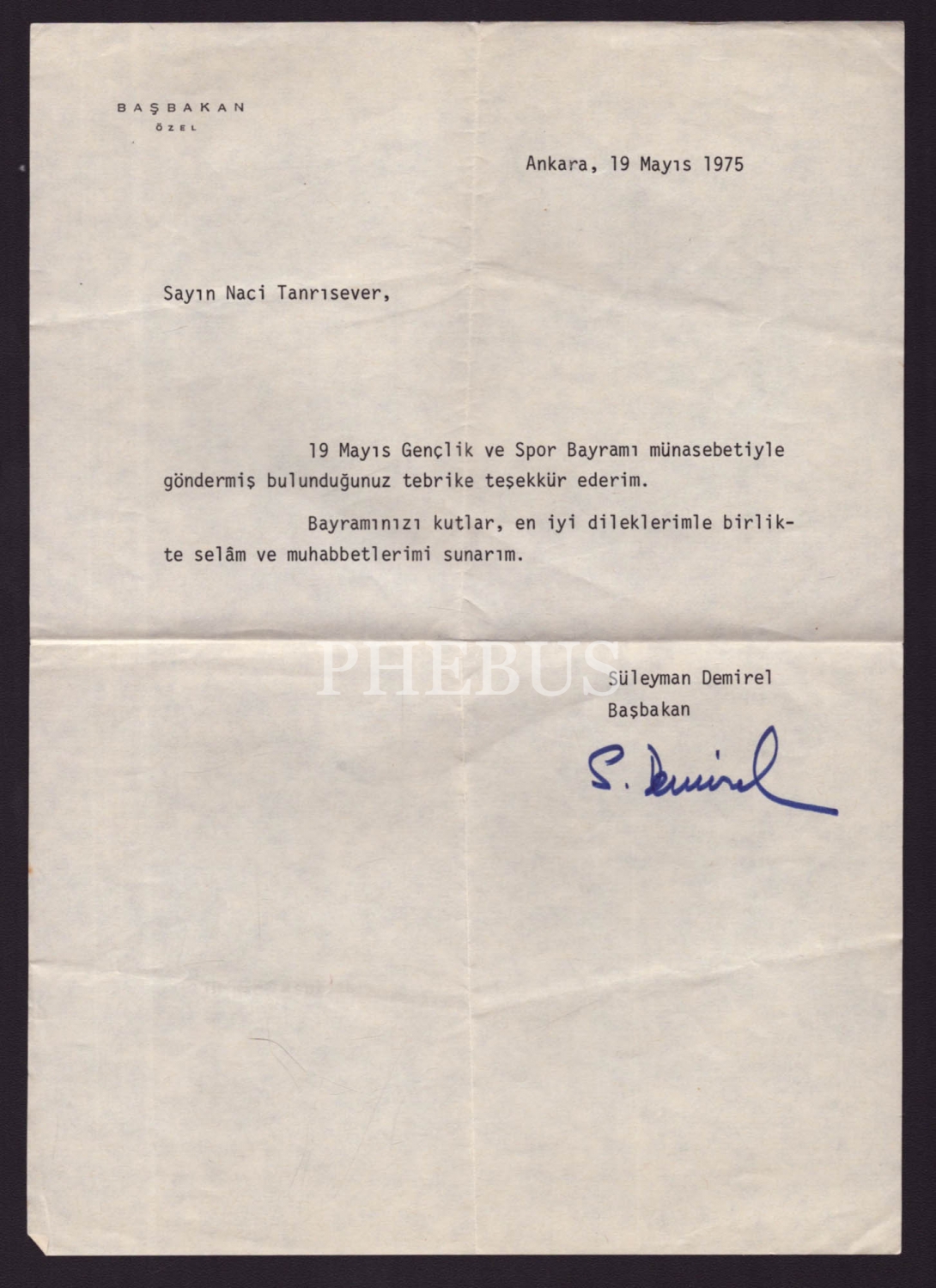 Başbakan Süleyman Demirel Islak İmzalı Mektup