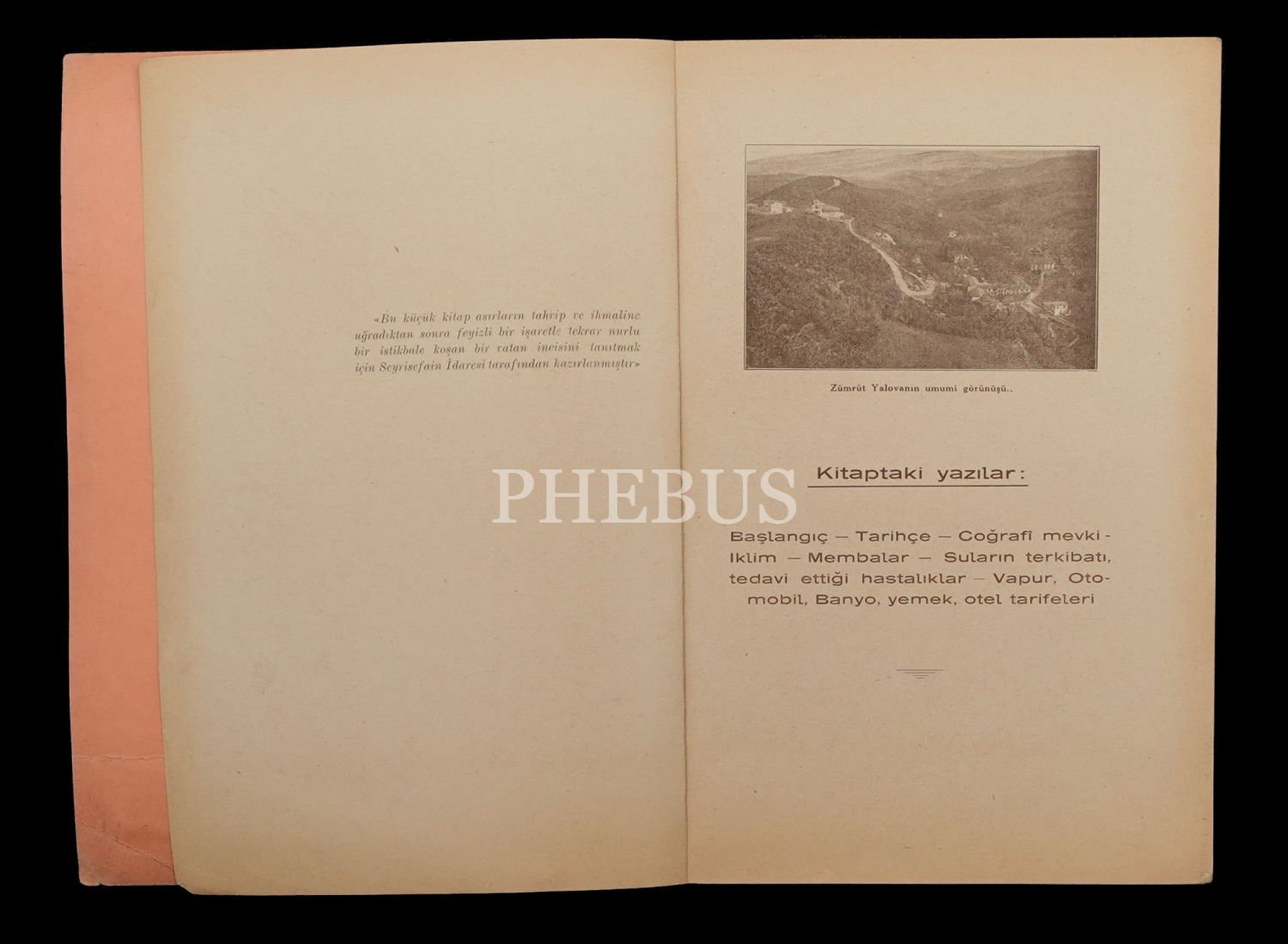 Zümrüt Yalova Kaplıcalarını tanıtmak amacıyla Seyrisefain İdaresince 1931 yılında yayımlanan kitapçık, Ahmet İhsan Matbaası, 140 sayfa, 17x24 cm...