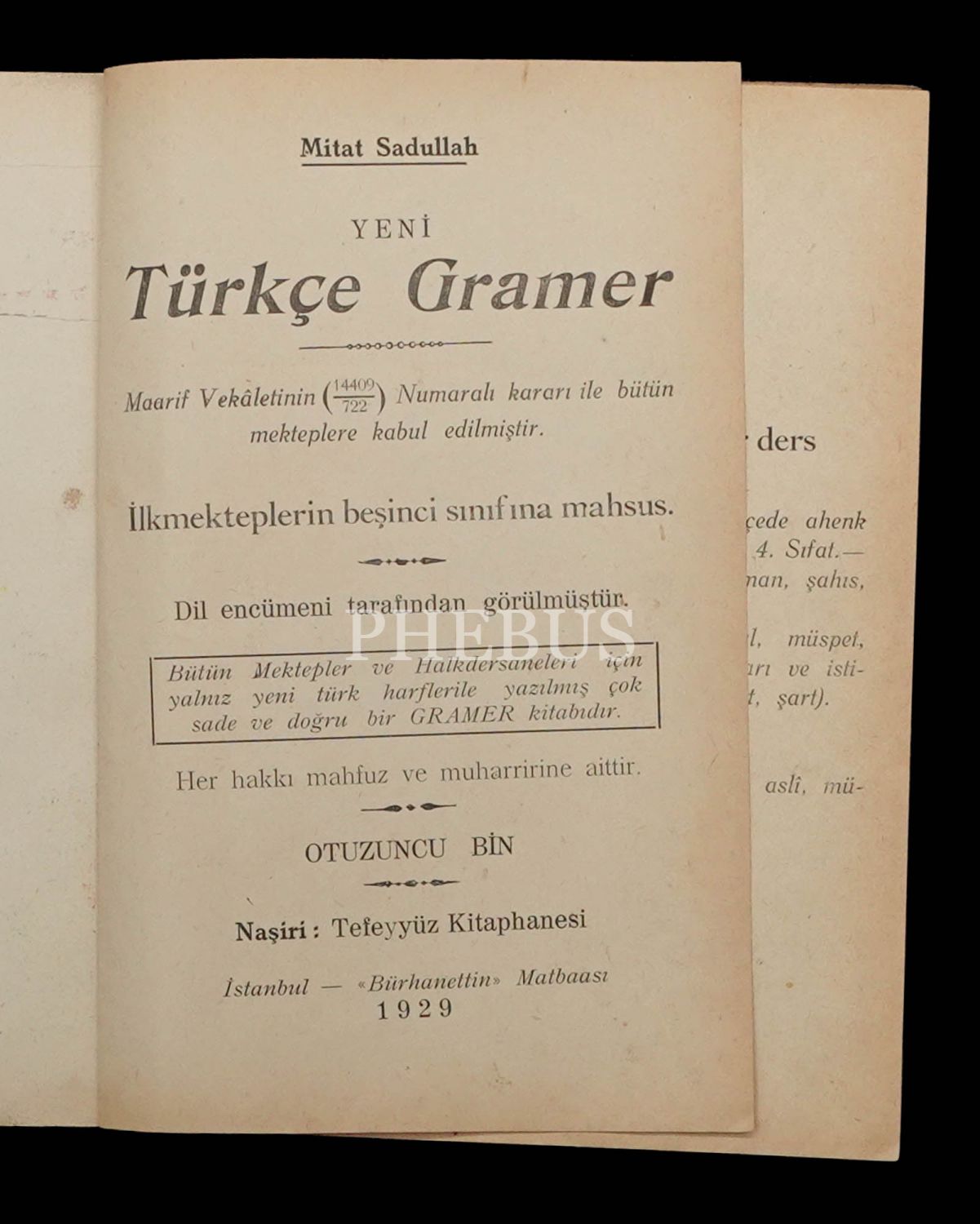 YENİ TÜRKÇE GRAMELER, Mitat Sadullah, 1929, Bürhanettin Matbaası, 216 sayfa, 14x20 cm...