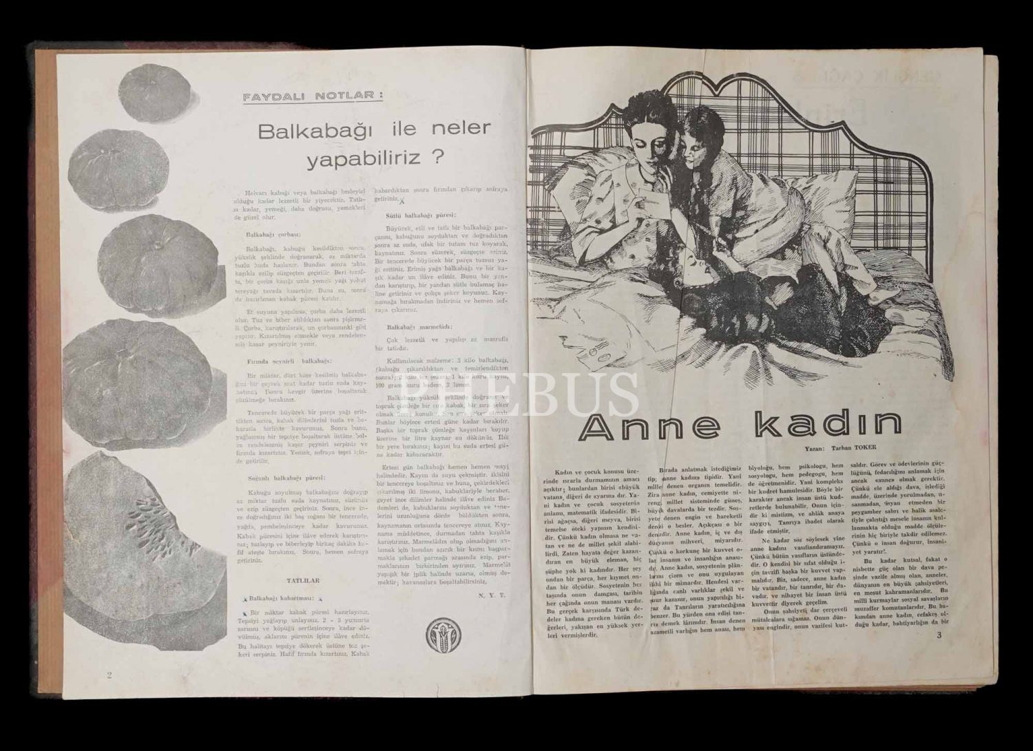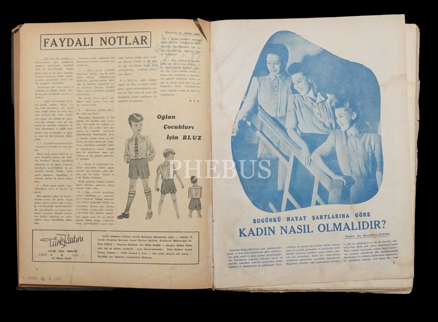 TÜRK KADINI dergisinin 1945 ilâ 1946 yılları arasında yayımlanan 24 sayısını içeren 2 adet cilt, 12 (2. sene/2. cilt) + 12 (3. sene/3. cilt) sayı, 24x32 cm...