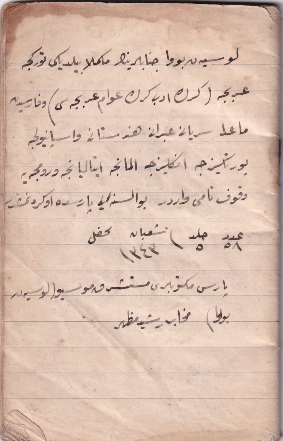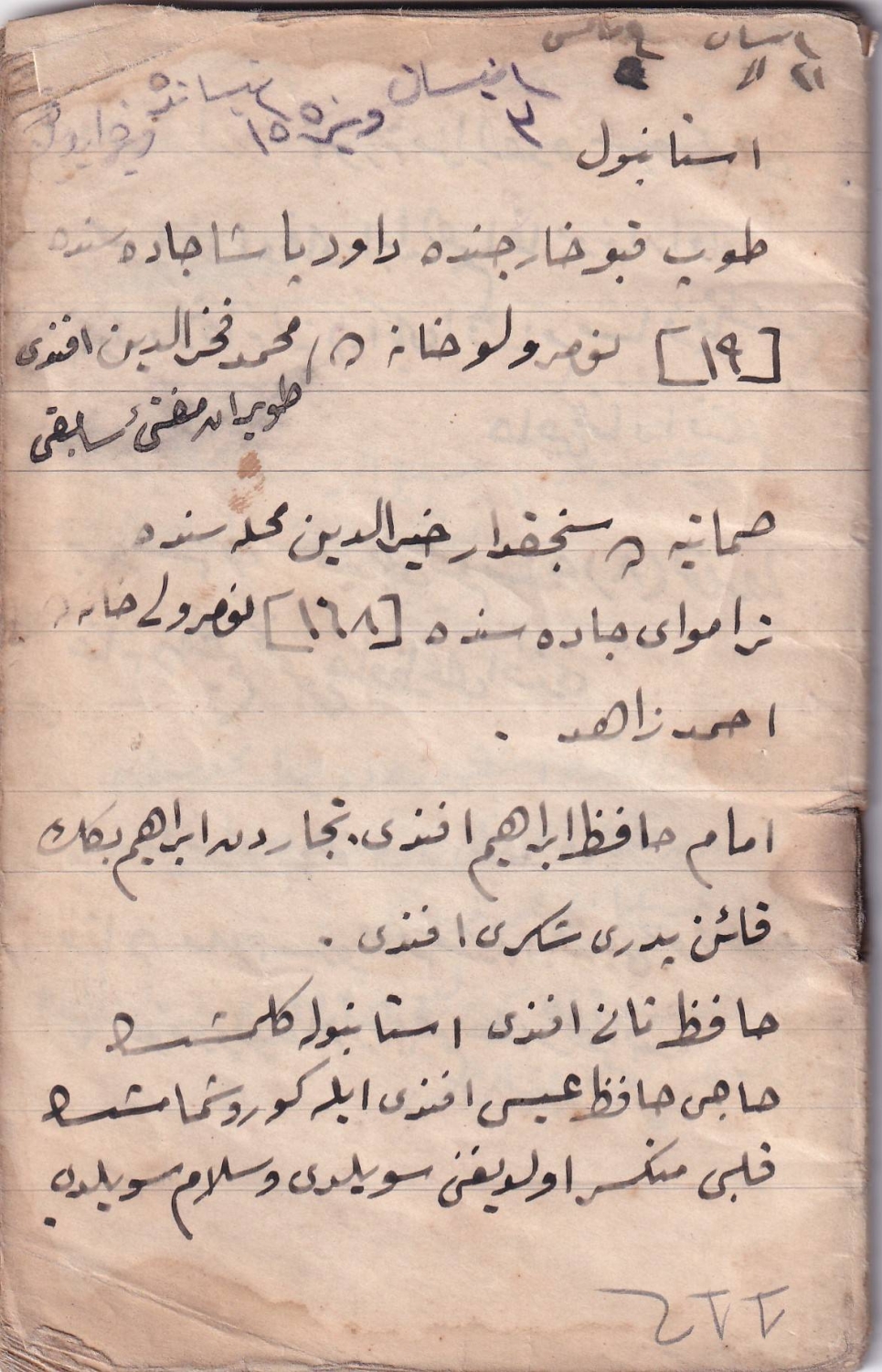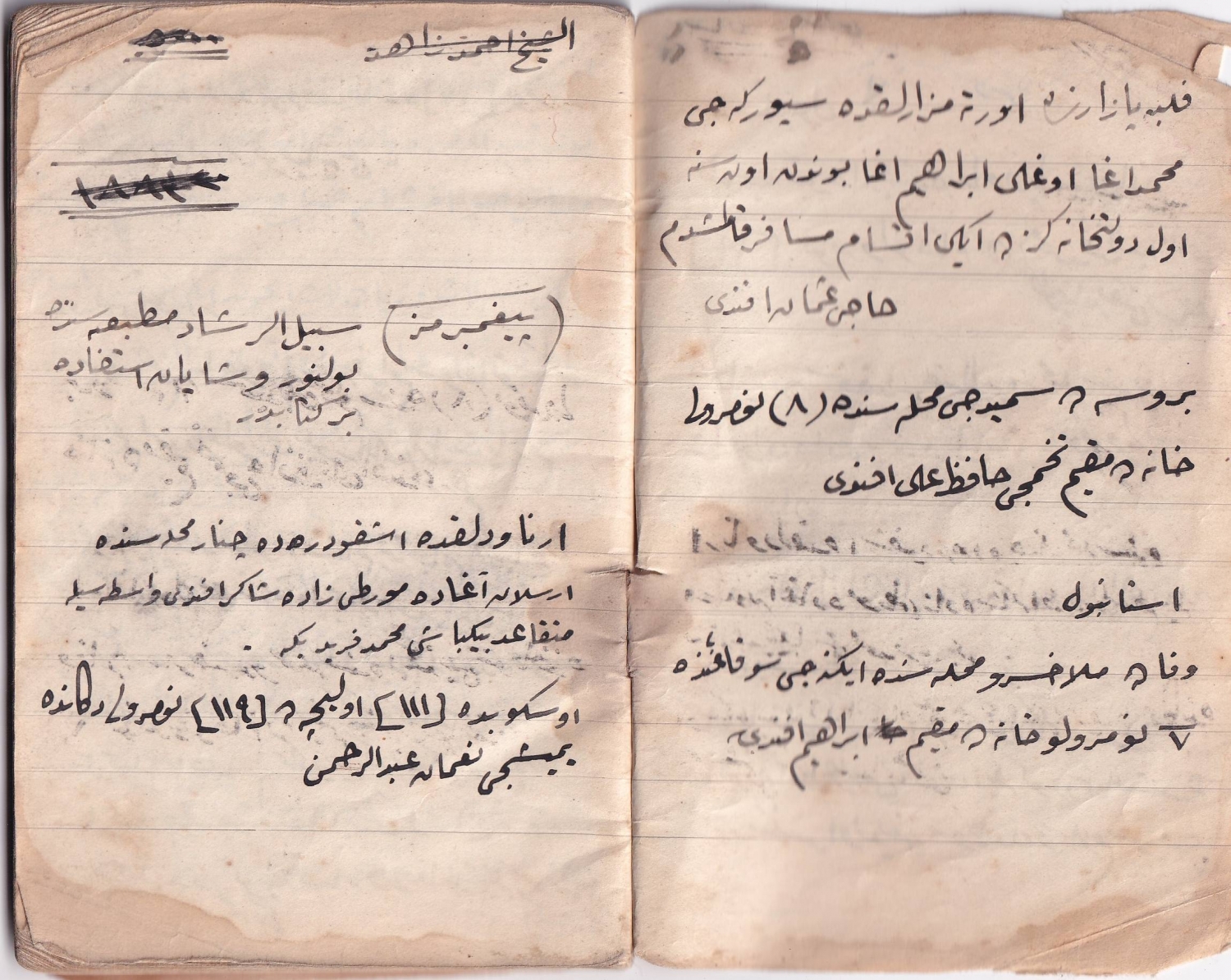 Osmanlıca el yazma defter, içinde İstanbul, Bursa, İşkodra gibi çeşitli adreslerin ve bazı ilaç tariflerinin ( sıtma, çıban vs) olduğu cep defteri, 32 sayfa, 10x14 cm