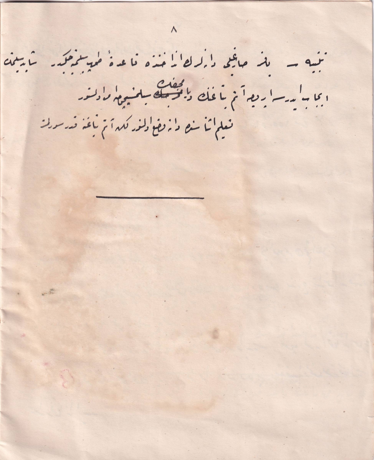 Osmanlıca 'Sahil bataryalarında müsta'mel 15 - 16 santimlik topların talimnamesi, topun hazırlanmasıve atış komutlarını içeren 8 sayfalık el yazma, 16x18 cm