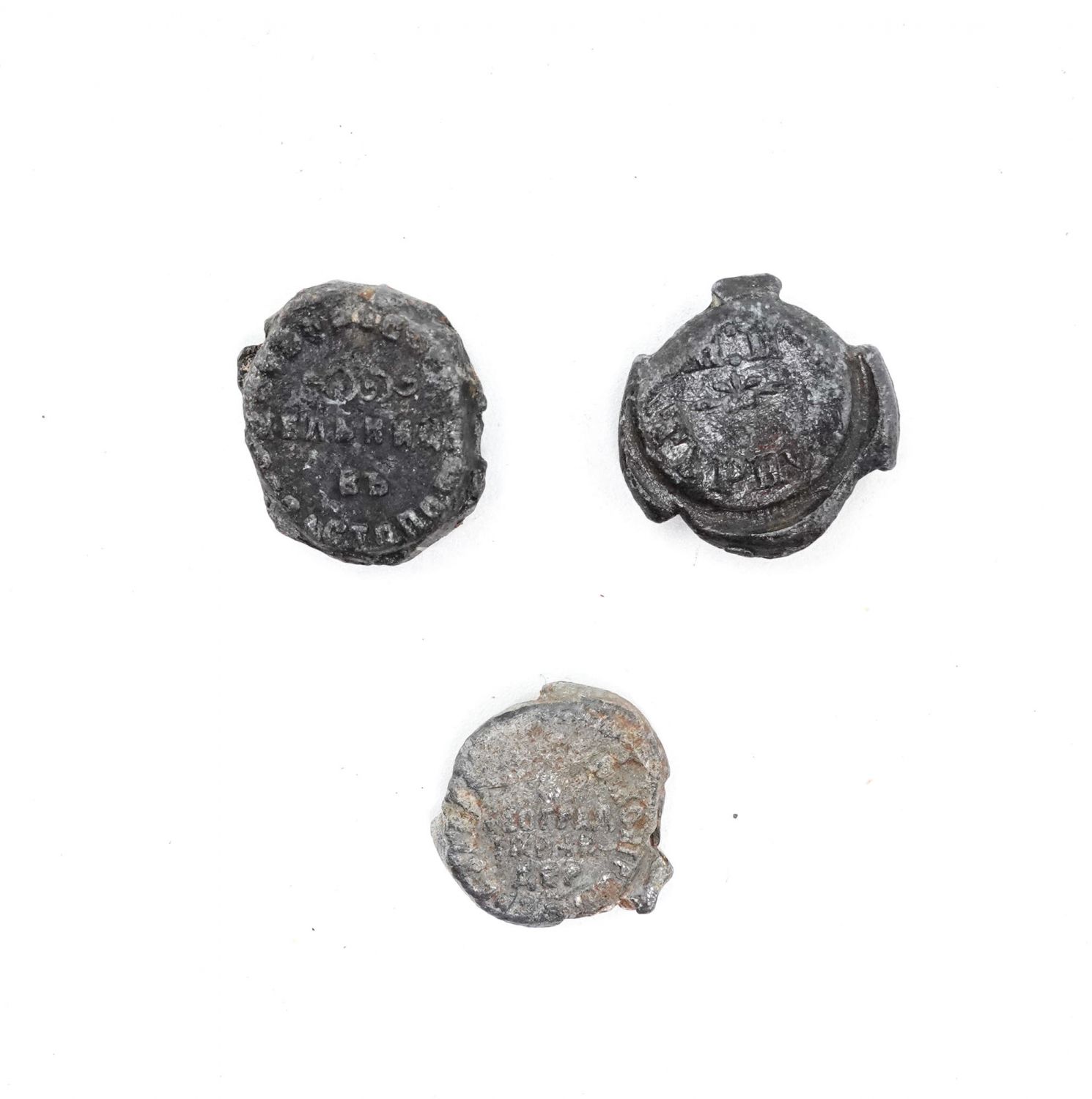 Osmanlı döneminden firma ismi yazılı çuval kapama mühürleri, ortalama 2 cm...
