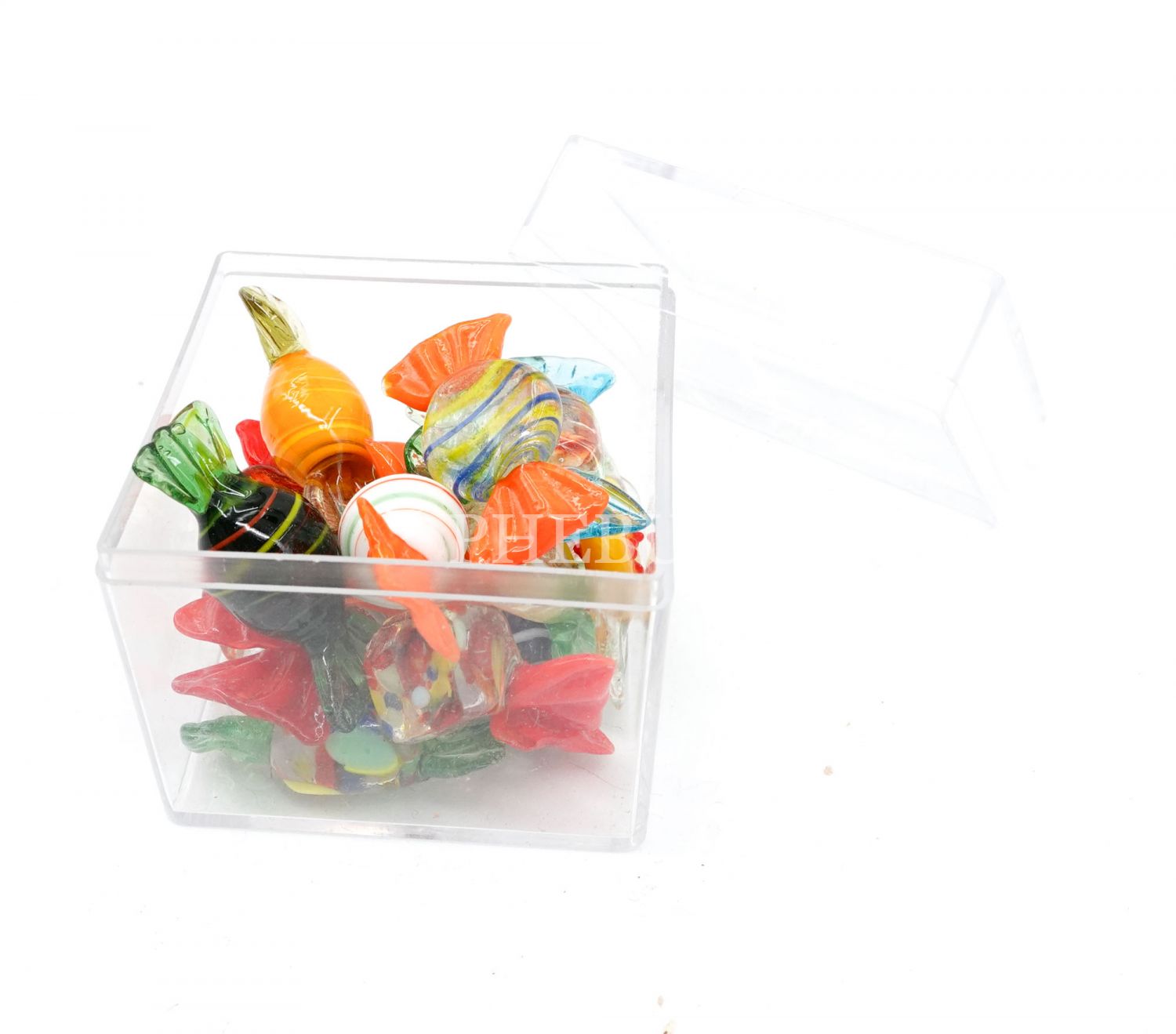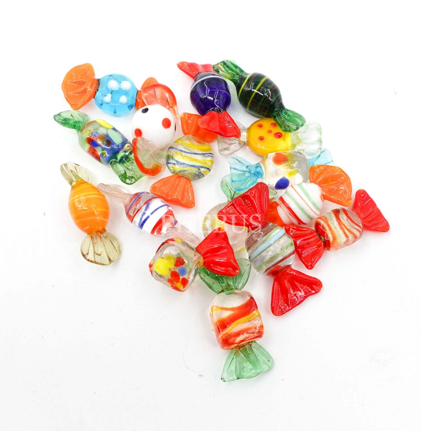Şeker formunda 16 adet murano cam, ortalama 3 cm...
