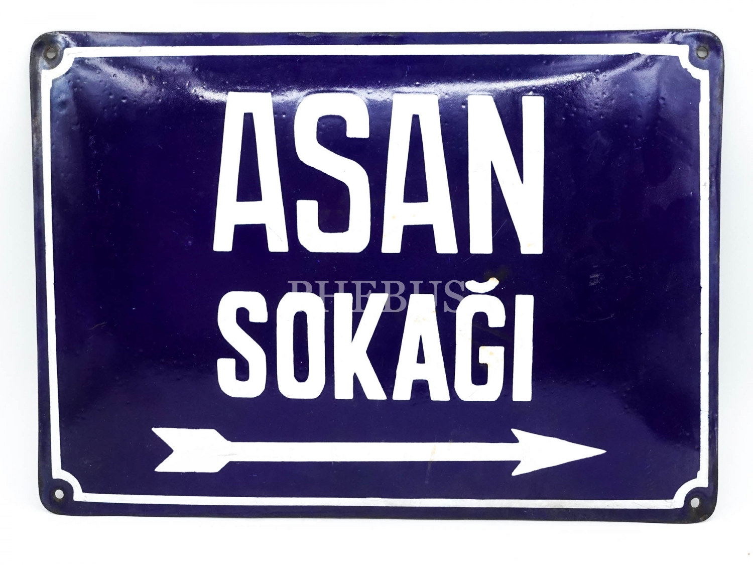 Emaye sokak tabelası: ASAN SOKAĞI, 35x25 cm...