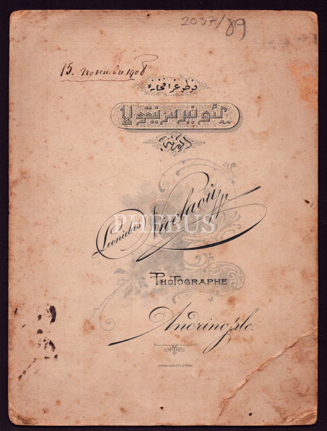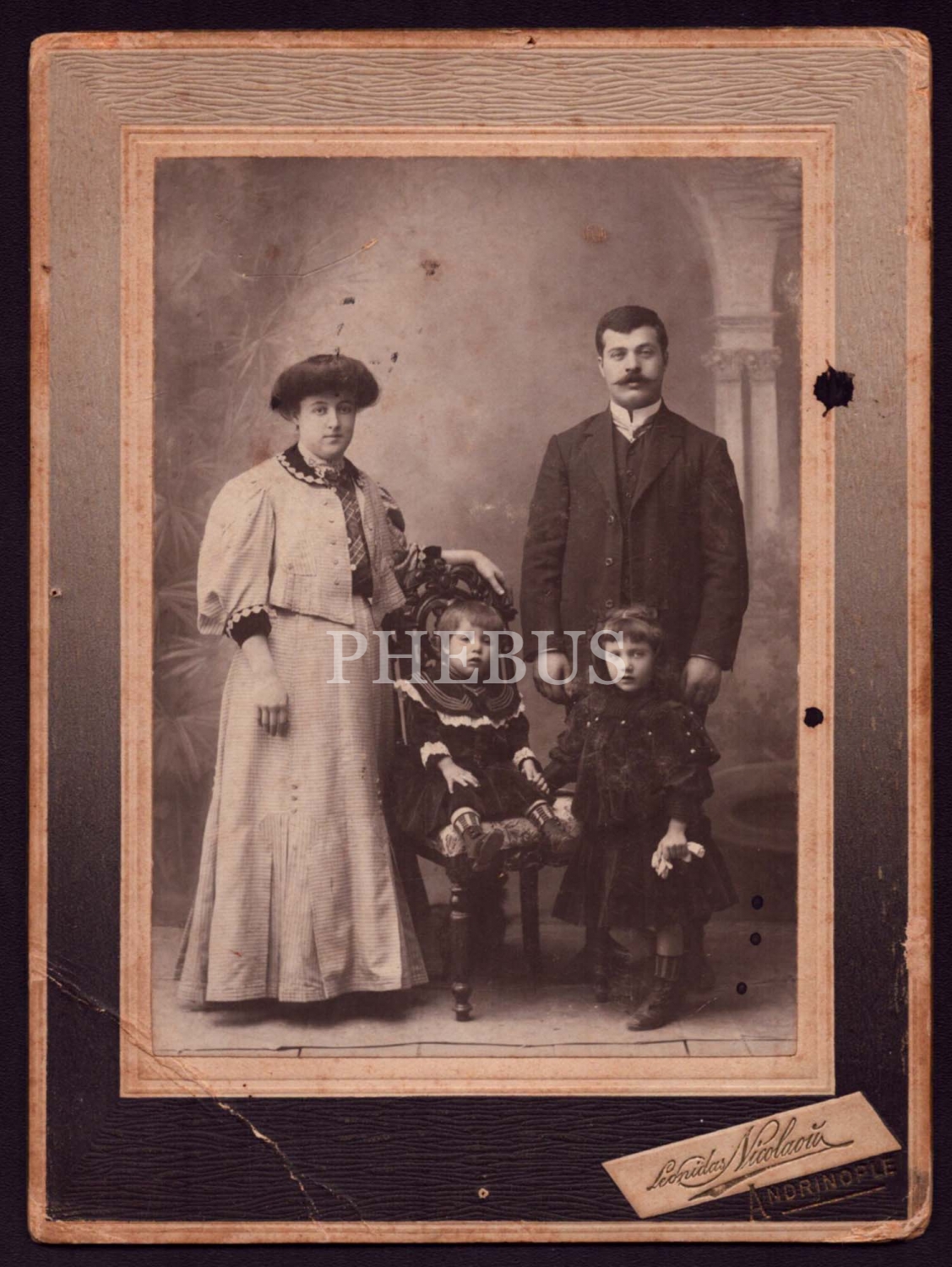 Gayrimüslim bir Osmanlı ailesinin stüdyo hatıra fotoğrafı, Leonidas Nicolaou, Andrinople (Edirne), 14x19 cm...
