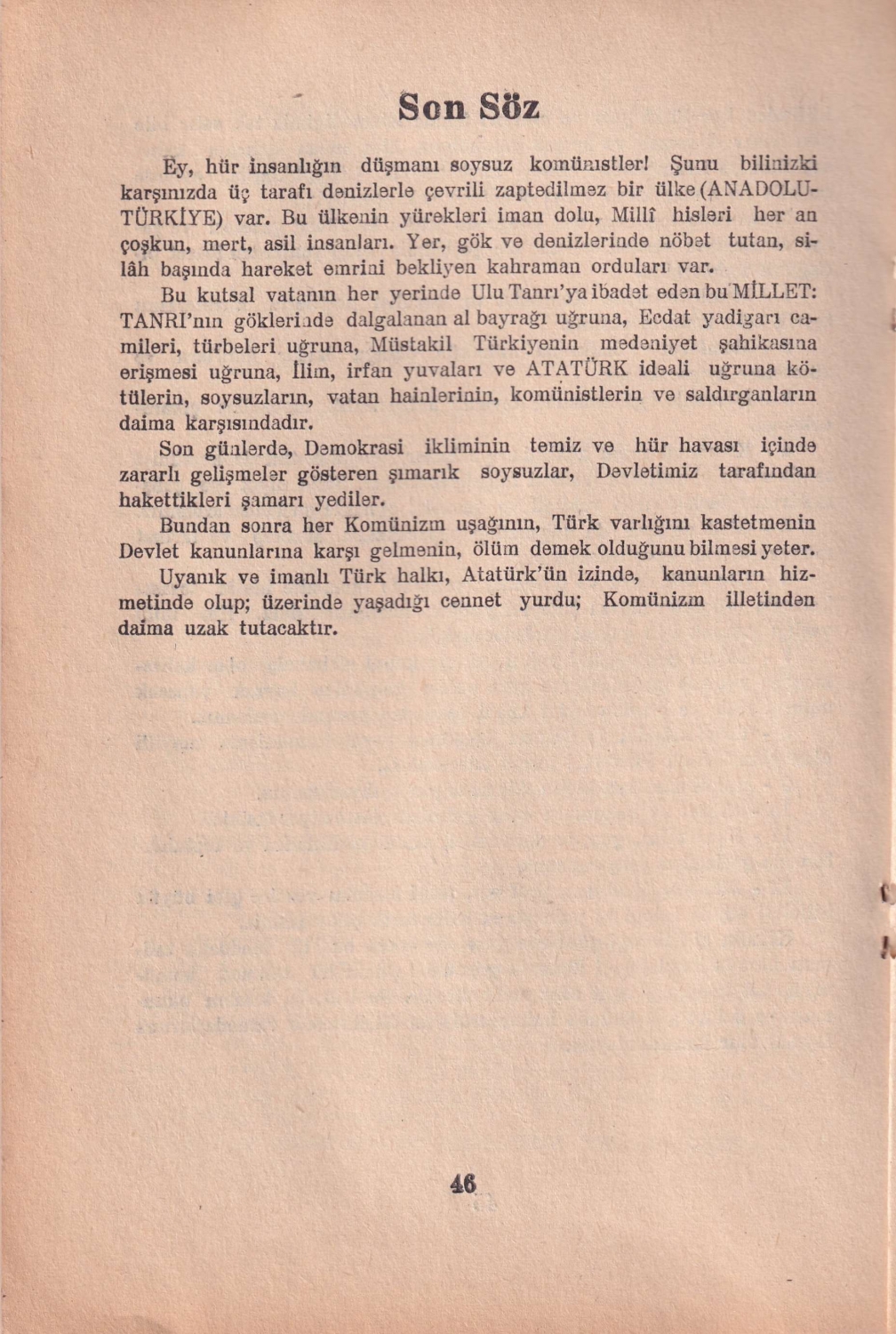 En Büyük Düşmanımız Komünizm (kızıl şeytan), Ali Kocaer, Kütahya İlbasımevi, 1967, 46 sayfa, 15x23 cm
